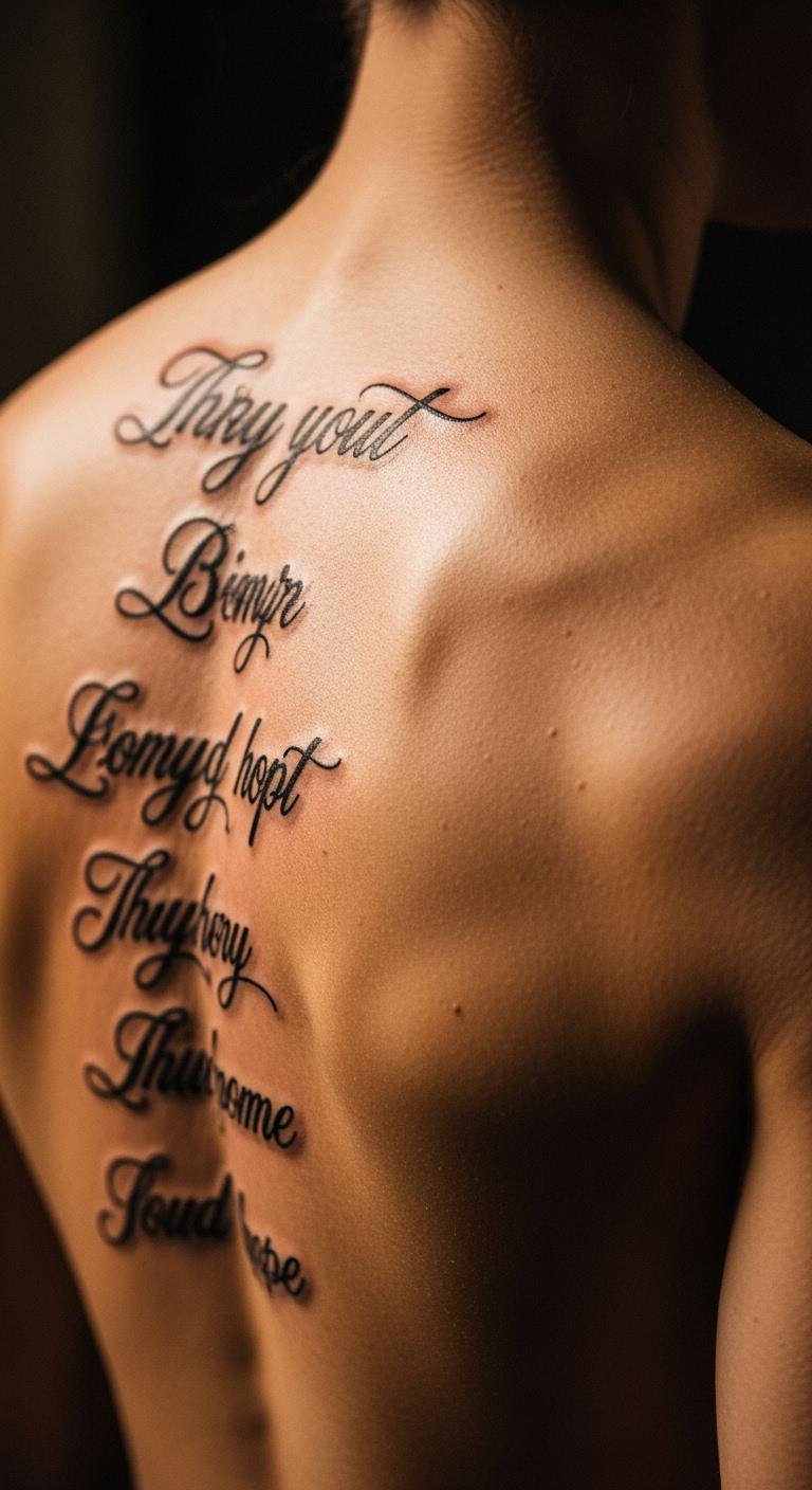 Quotes on your back motivate daily. They stick with you. Write phrases on paper first. Use free font generators. Choose short ones for budget. For example, jot from favorite books. Quotes mean guidance, so select carefully. Curve them along your spine. Go with clean scripts. Look for text specialists. This tattoo inspires onward.