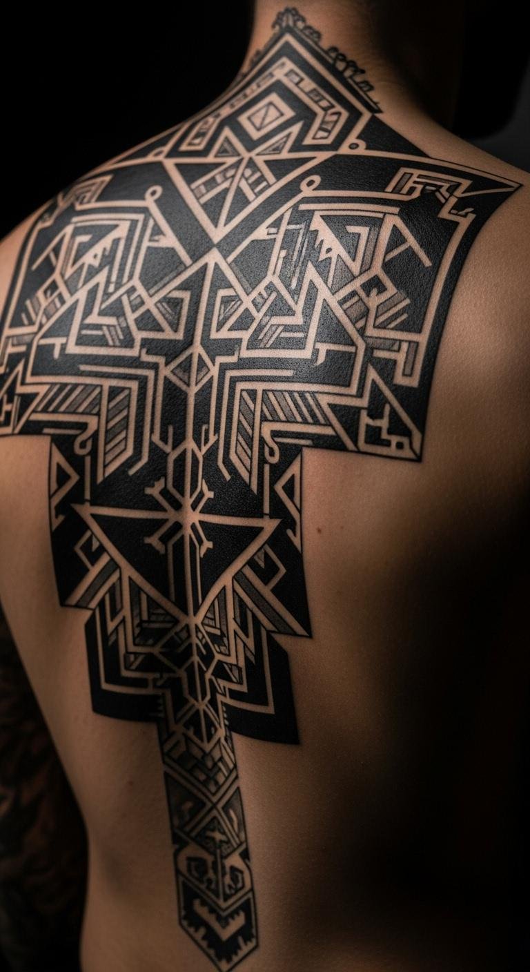 Blackwork geometrics make your back bold. They command attention. Draw shapes on paper. Use free geometric tools. Keep it dense but cheap. For example, outline from rulers. These mean structure, so plan ahead. Cover larger spaces. Stick with black ink. Find efficient studios. Your design stands firm.