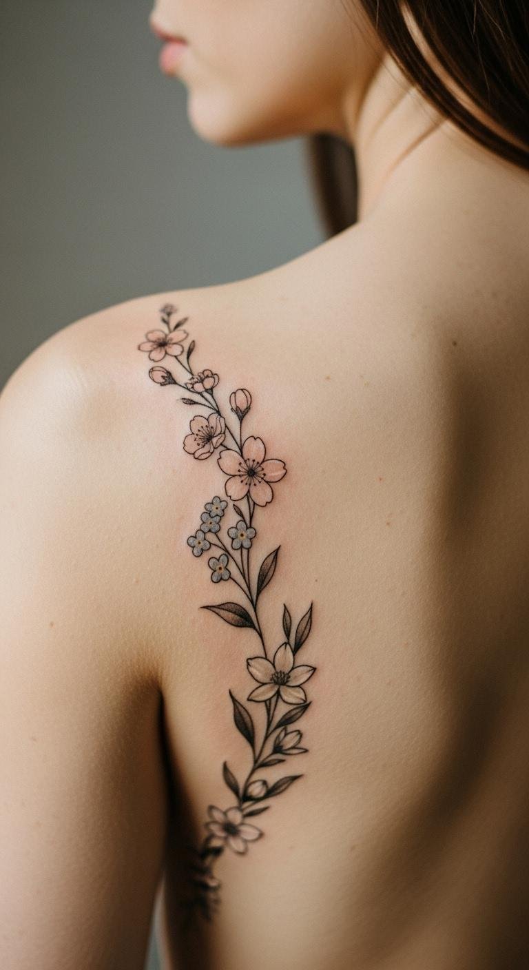 Floral accents on your shoulder blades add grace. They enhance subtly. Sketch flowers quickly. Use free floral apps. Keep them tiny to save. For example, draw from your garden. Flowers mean beauty, so select blooms. Place on blades for symmetry. Go with outlines. Find quick-service artists. Your back blooms softly.