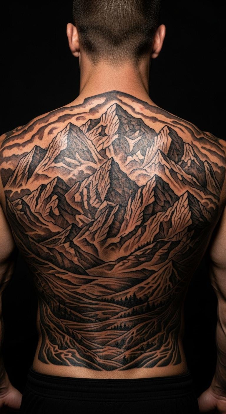 Mountains on your back show adventure and peaks. They make a statement without much fuss. Draw hilly shapes on paper at home for practice. Explore free online editors to layer details. Cut costs by choosing grayscale over full color. For instance, use everyday markers to mock up ideas on your arm. Mountains stand for resilience, so link them to your challenges. Place them across your shoulders for width. Opt for fine details to keep it affordable. Check out community tattoo events for deals. You’ll carry a piece of nature everywhere.