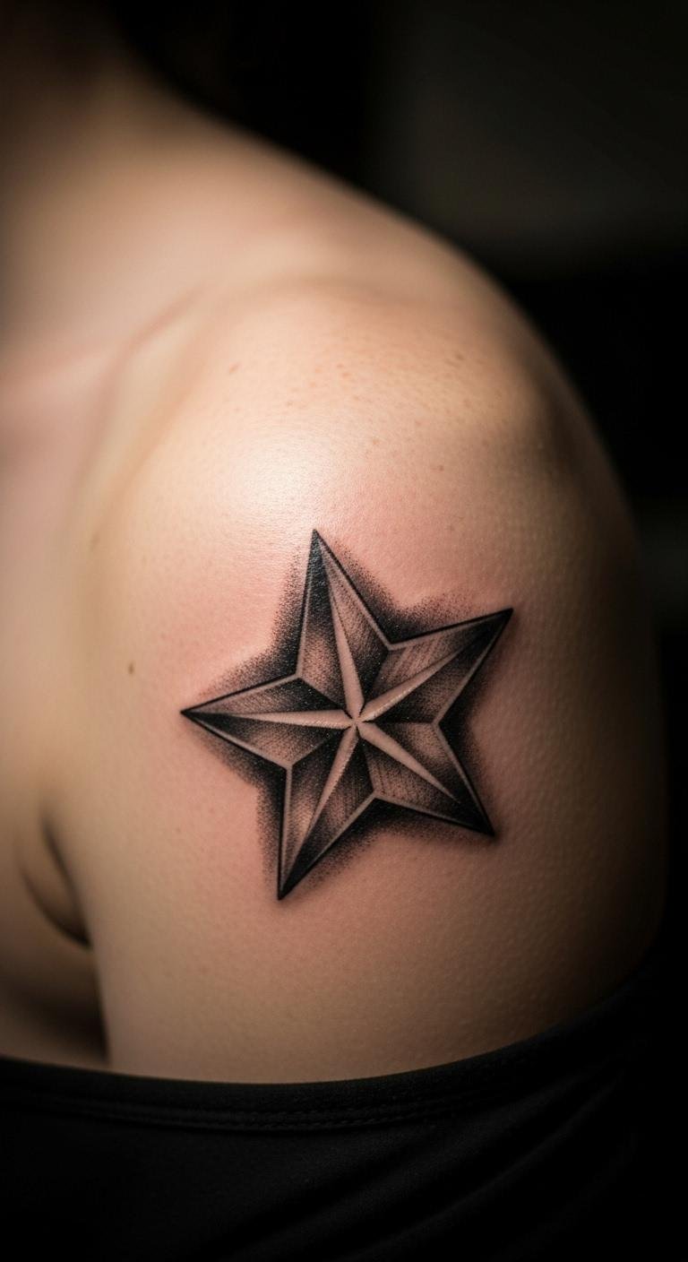 A star for large shoulders tattoo makes a statement. Use bigger sizes. It’s for fuller builds. Plan accordingly. Find sales. Position well. Maintain simply. This design stands out. Personalize boldly. It’s effective.