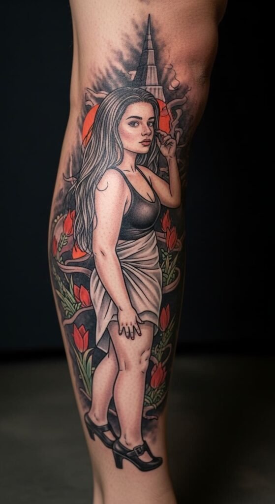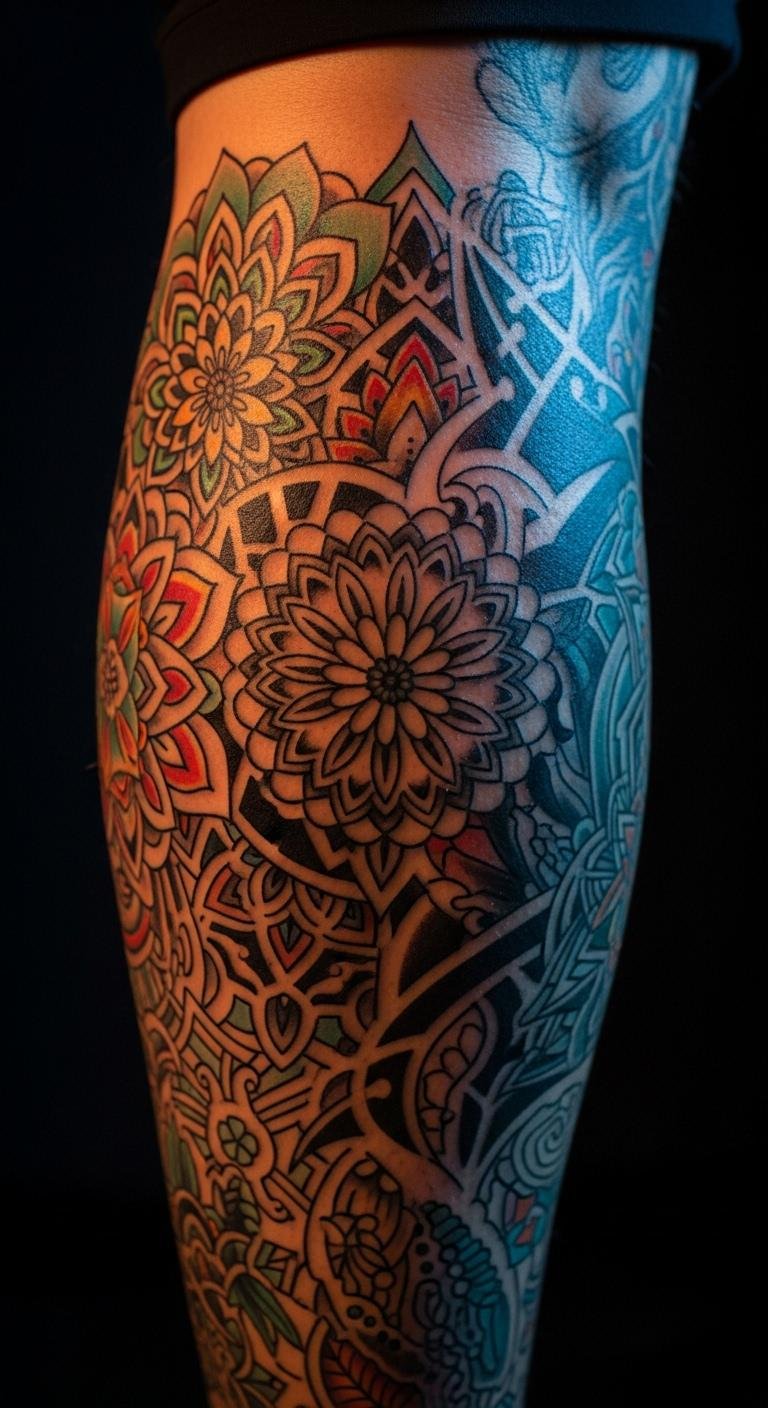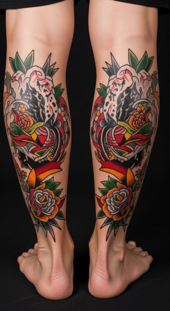 Big scenes on your calf make a statement. They cover more space for detailed stories. Sketch large ideas on big paper at home. Find artists who offer payment plans for bigger work. Bold these: large art tells tales without draining funds. Break it up: Pick a theme you love. Put it on the whole calf. Use posters for inspiration. This prep is easy. Break sessions into parts. Discuss details with the pro. Your piece will impress.