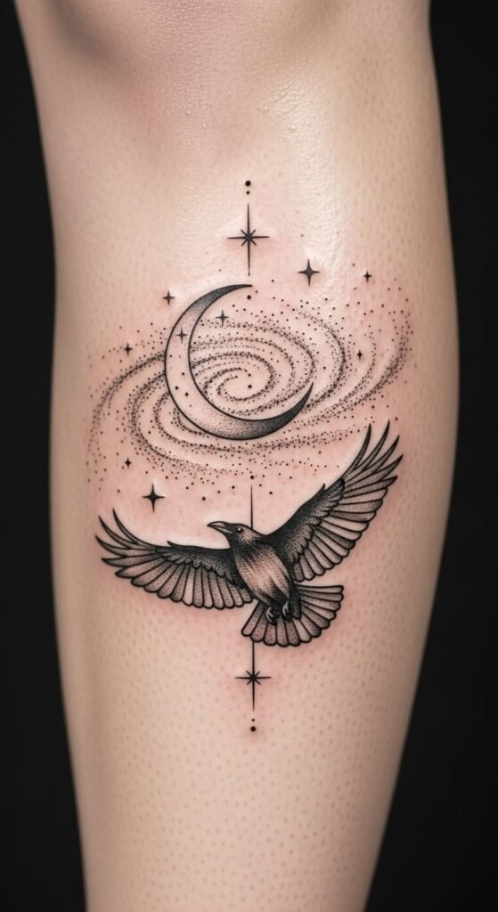 Stars and planets on your calf create a cosmic adventure. They feature dotted lines for a starry effect. Map out constellations on paper with a pen. Search for affordable cosmic specialists in your area. Bold these: celestial themes spark imagination without expense. Break it down: Pick your favorite galaxy. Put it on the upper calf for show. Try stargazing apps for design ideas. This makes prep easy and free. Keep sizes small for quick sessions. Chat with the artist about stars. Your tattoo will shine bright.