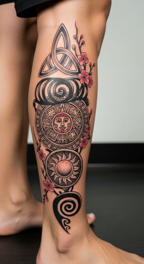 Aztec or Celtic symbols on your calf honor your roots. They use repeating shapes for a historic look. Draw ancient icons on paper for a personal touch. Find artists who focus on heritage at lower rates. Bold this: heritage symbols connect you affordably. Keep it straightforward: Choose ones that tell your story. Locate them where they fit your style. Use history books for free sketches. This DIY method guides your choice. Go for basic lines to cut costs. Talk to the expert for advice. You’ll have a meaningful mark.