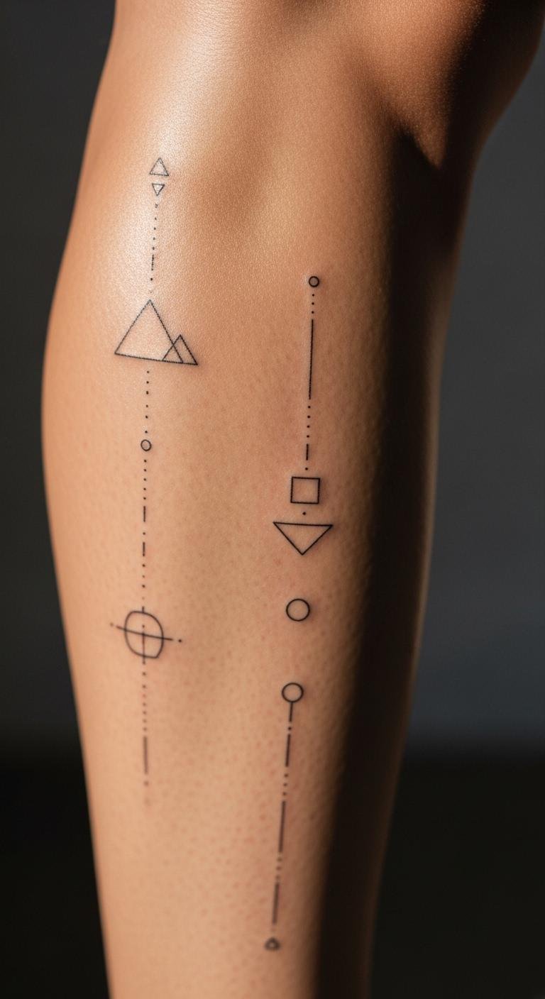 Geometric tattoos with triangles or circles bring balance to your calf. They use straight lines for a modern edge. Draw grids on paper at home to plan your layout. Look for artists who do quick, affordable sessions. Bold these: geometric designs fit any budget easily. Break it down: Choose patterns that mean something to you. Put them on the side of your calf for style. Try apps that let you draw digitally for free. This helps visualize the final look. Keep the design simple to speed things up. Talk details with your tattoo person. Soon, you’ll have a clean, eye-catching piece.