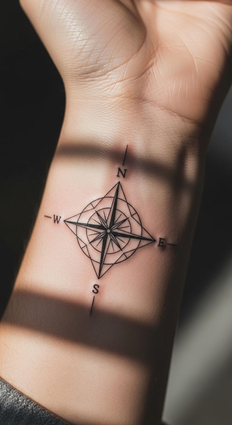 Think simple lines that point the way. A minimalist compass fits on your wrist or ankle for a quick reminder of your goals. Start with a basic sketch on paper using a pen—trace a circle and add arrows. This keeps costs low at under $50 for a small session. Pick a spot that’s easy to hide or show, like your inner arm. For a DIY twist, draw it on with henna first to test the feel. Bold the key: minimalist compass. Mix in a personal touch, such as a small dot for a family initial. Keep sessions short with a local artist—aim for one hour. This design works for busy days, offering clear guidance without overwhelming details.