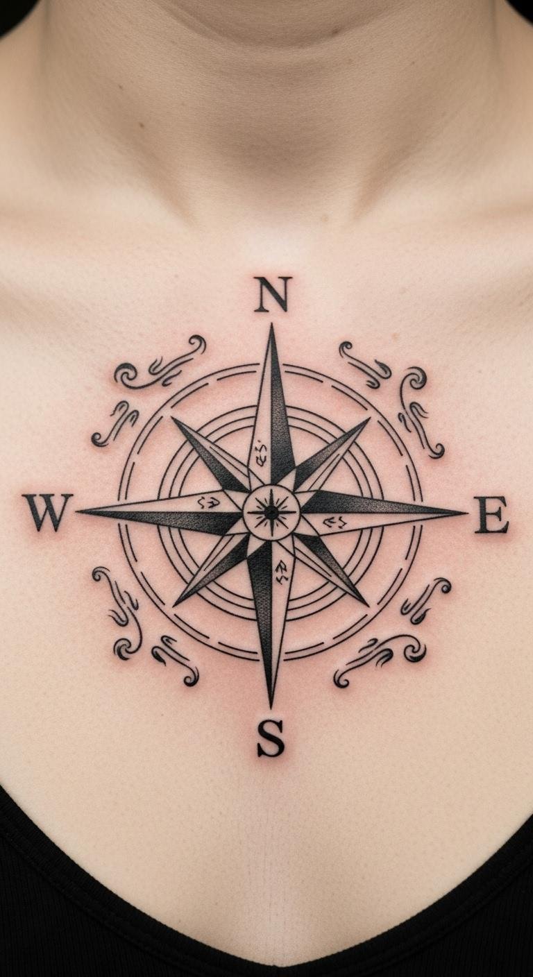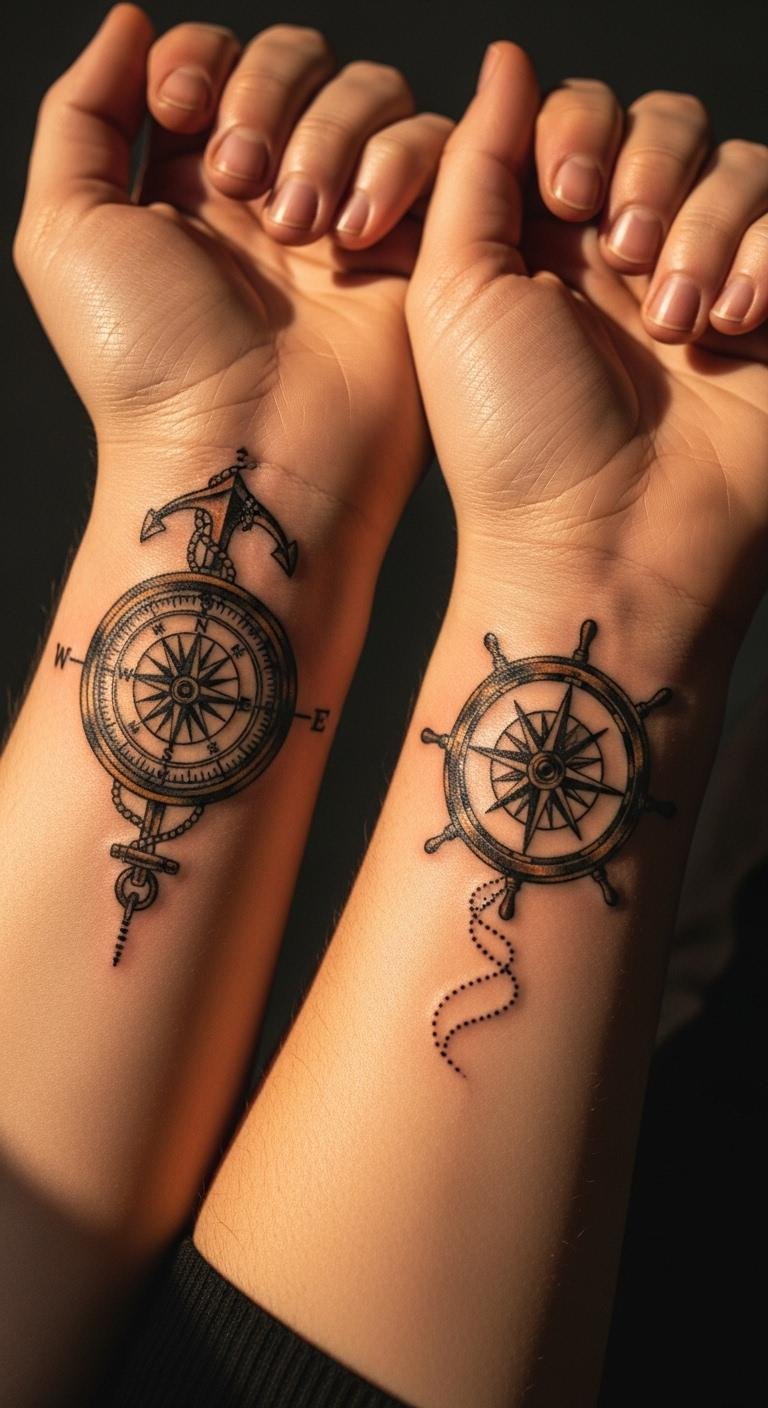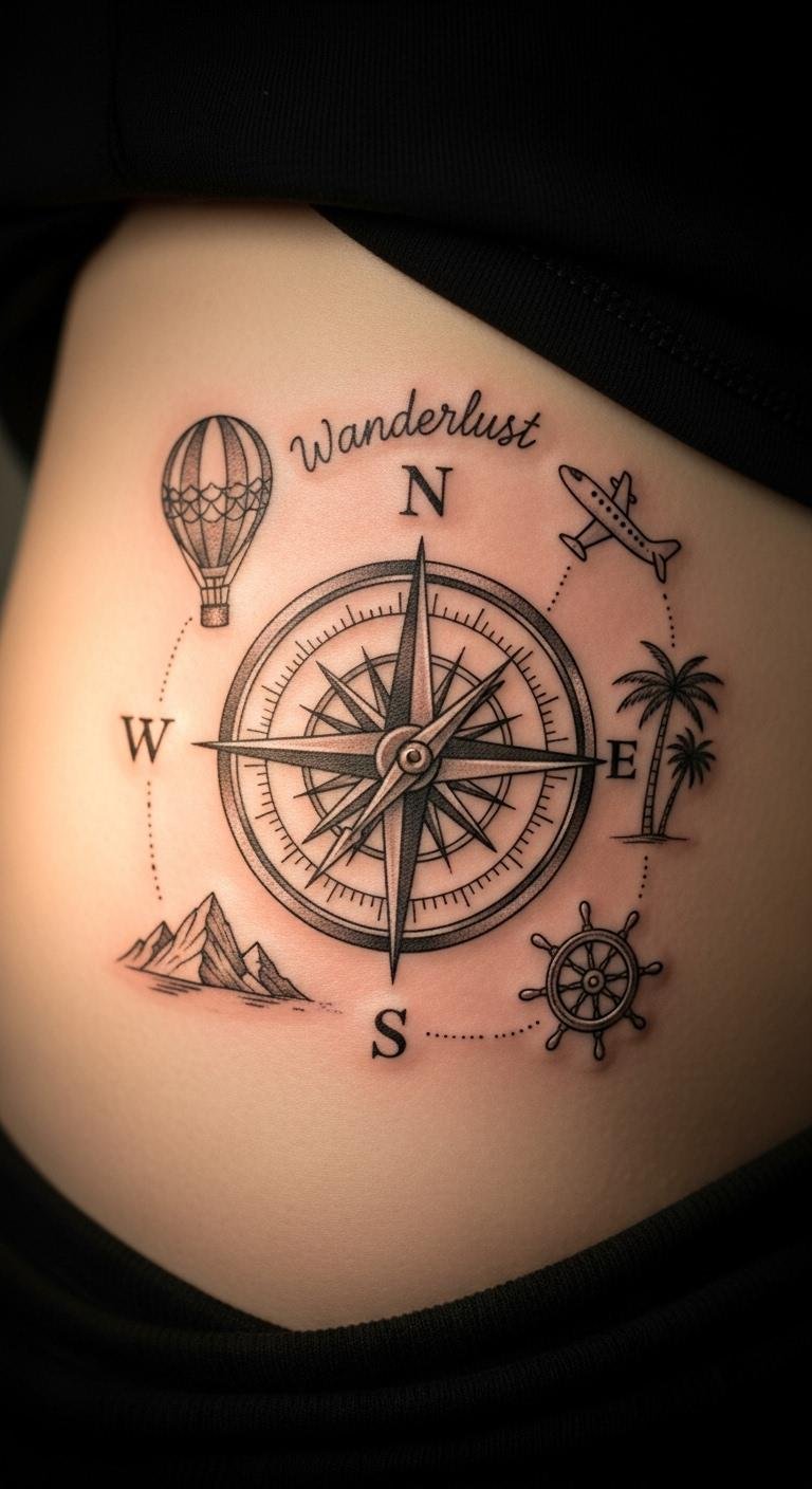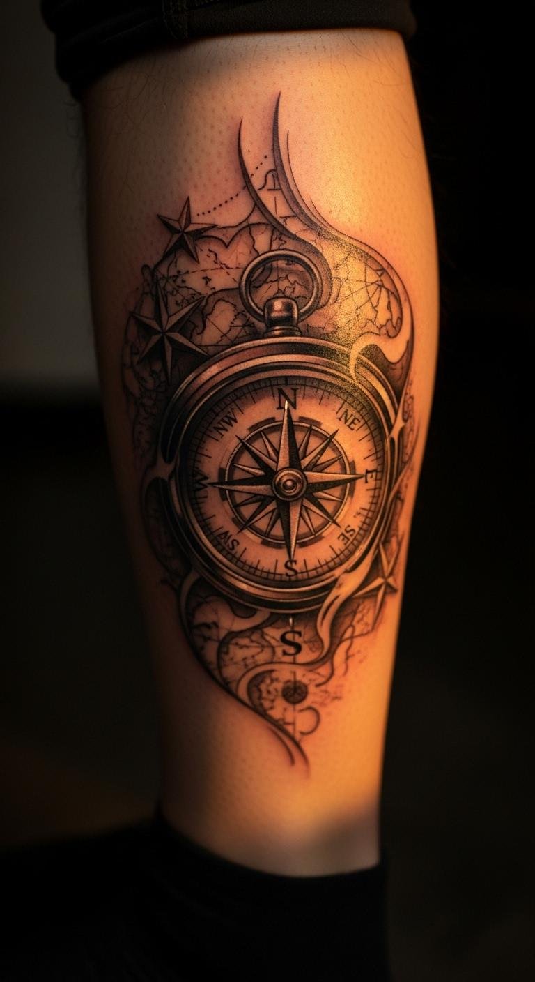 Go for waves and ropes around your compass to capture travel vibes. Place it on your shoulder for that explorer feel. Sketch ideas at home with free online templates—print and trace on paper. Budget tip: Look for artists offering deals under $100 for smaller sizes. Add elements like a ship wheel for extra flair, using affordable stickers as practice. This setup suits trips or new starts, keeping things light and fun. Bold the key: nautical compass. Opt for quick appointments to fit your schedule. It’s a simple way to celebrate journeys without complex prep.