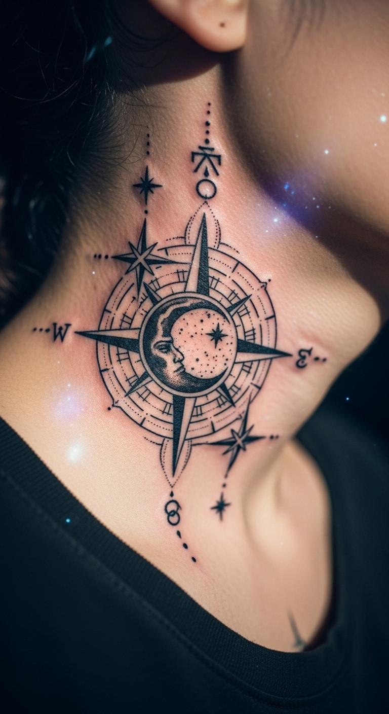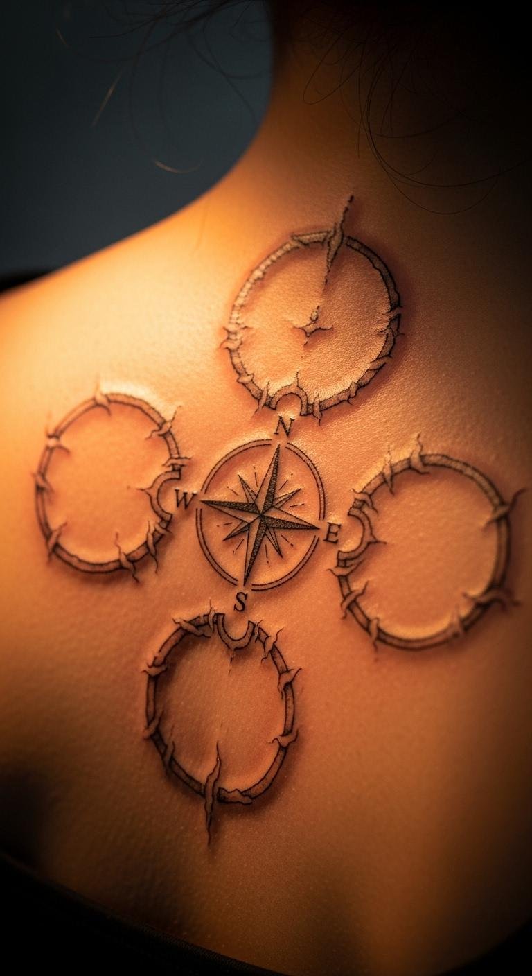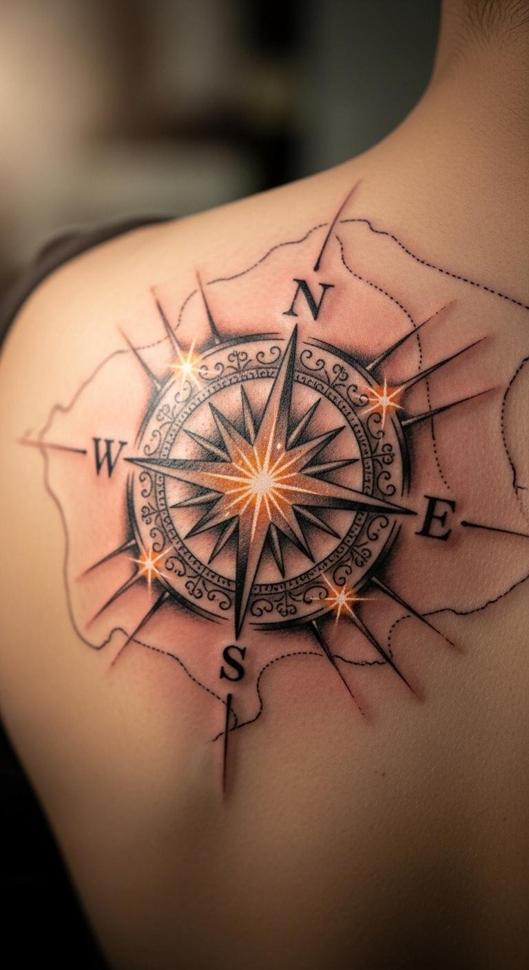 Center a star in your compass for guidance home. Spot it on your back for protection. Use free apps to sketch designs quickly on your phone. Go budget-friendly with artists charging $60 for basics. Add a date or line for personalization—practice with washable markers. Bold the key: North Star compass. This idea suits life changes, like moves, in just one visit. Make it easy by focusing on clear, simple shapes.