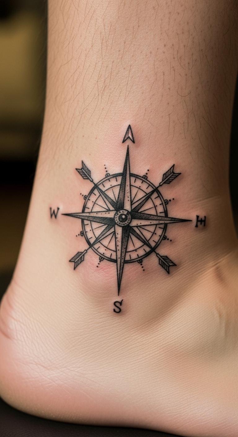 Use arrows radiating out to show progress. Ankle placement keeps it subtle. Sketch with household items like rulers for straight lines. Find deals under $90 at walk-in spots. Add a growth symbol, such as a tree—try it with temporary designs. Bold the key: personal growth compass. Ideal for milestones, it fits into brief appointments. Keep actions simple for real impact.