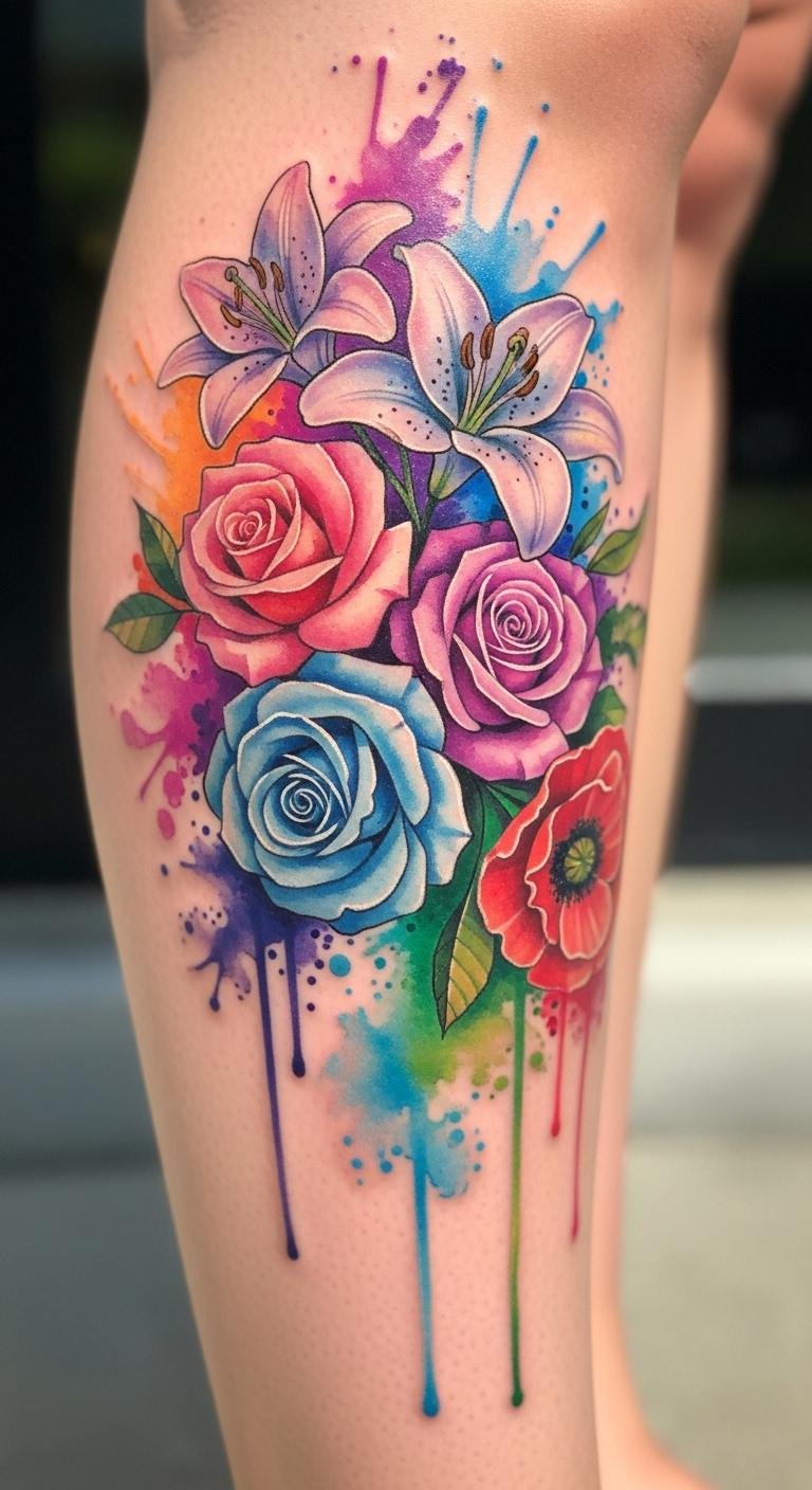 Watercolor tattoos mimic paint with soft, blended colors for an artistic feel. Think flowers that look freshly brushed. Sketch colorful ideas with markers at home for zero cost. Budget tip: Opt for smaller pieces, around $100, at beginner-friendly studios. Place them on areas like the ankle for a playful touch. Use phone apps to color in your designs digitally. These work for anyone wanting vibrancy without permanence issues. Action: Pick a single flower to keep it affordable and meaningful. Easy start with online tutorials for home planning.