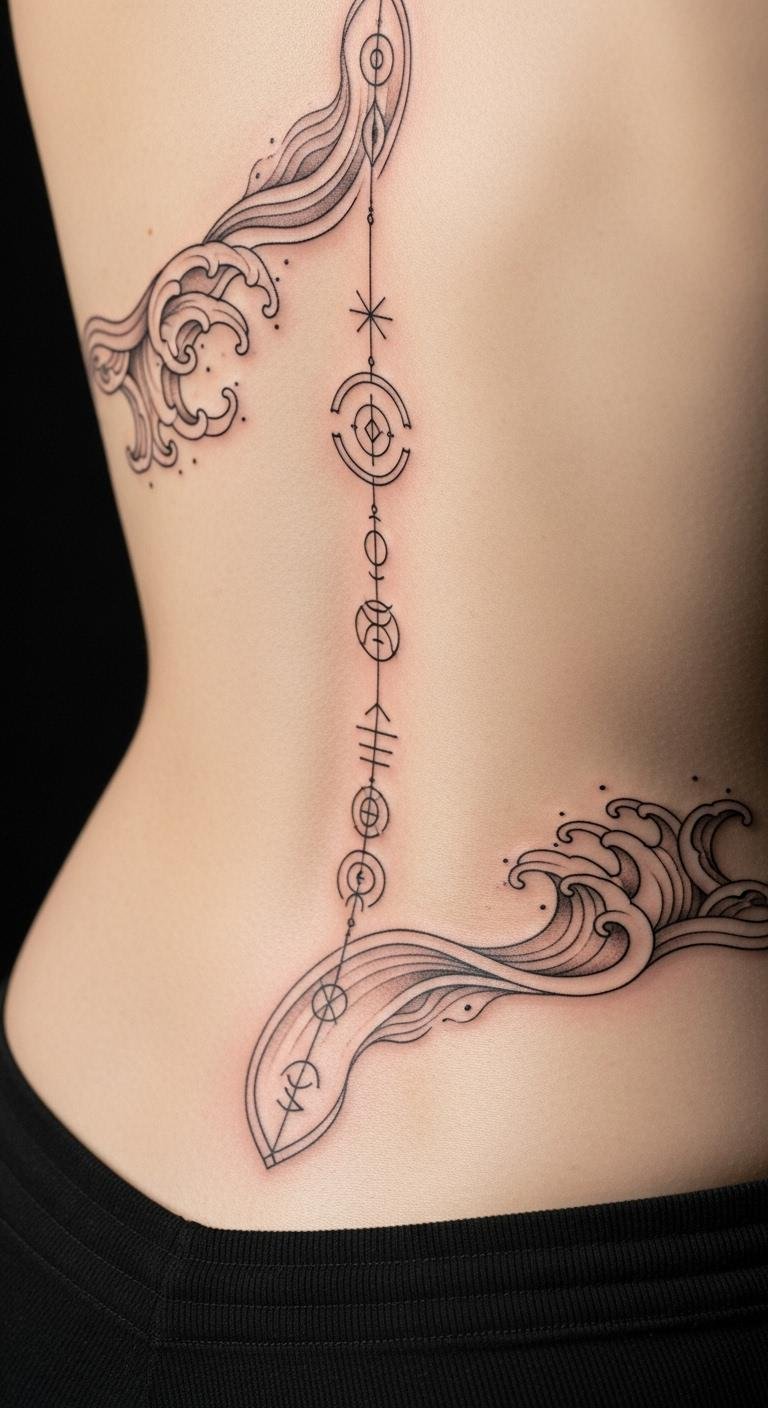 Lower back tattoos offer private space for designs like waves or stars. Sketch ideas quickly on yourself with a washable marker. Find deals at studios for under $150. These spots are great for discreet options. Use online filters to preview looks. Keep designs simple for faster, cheaper sessions. Tip: Choose meaningful symbols to add depth.