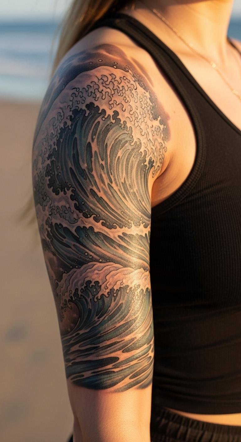 Ocean waves symbolize freedom and flow. They’re refreshing for half sleeves. Sketch waves at home. Find wave art online. Look for studio discounts. Keep it to waves for budget. Do in wave layers. Heal with sea salt mixes. This design evokes adventure. Style with beachwear. Personalize with shells. Begin drawing waves.