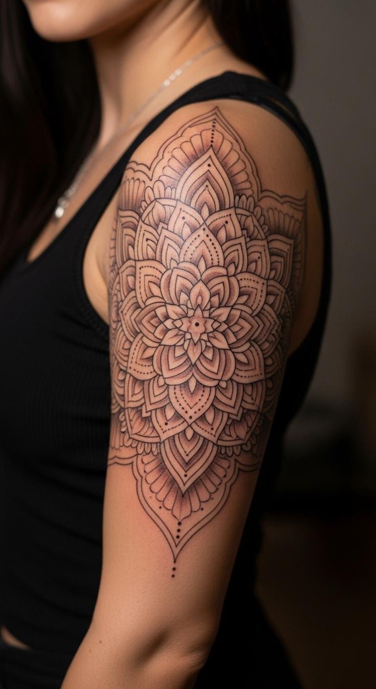 Mandala tattoos bring balance and harmony. They’re perfect for a half sleeve that calms the mind. Begin with free mandala templates online. Trace them on paper to customize. This keeps things simple and cheap. Choose a local artist with mandala experience. Ask for their advice during a free chat. Go for black ink to save on colors. Build the design in stages. Start with the center circle. Add outer rings later. Use household items for prep, like unscented soap. This tattoo adapts to your style. Wear it under blouses for subtle vibes. Extend it later if you want more. Make it your own by adding personal symbols. Take the first step by sketching today.
