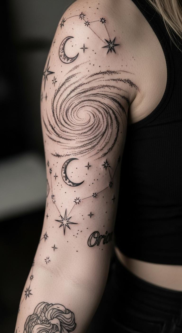 Celestial tattoos bring the stars to your arm. They represent dreams and wonder. Use stencils from free apps. Sketch on paper easily. Look for deals at studios. Stick to key stars for savings. Do it in stars-then-moon sessions. Heal with home remedies. This design lights up your path. Pair with starry outfits. Make it your night sky. Act by mapping constellations.