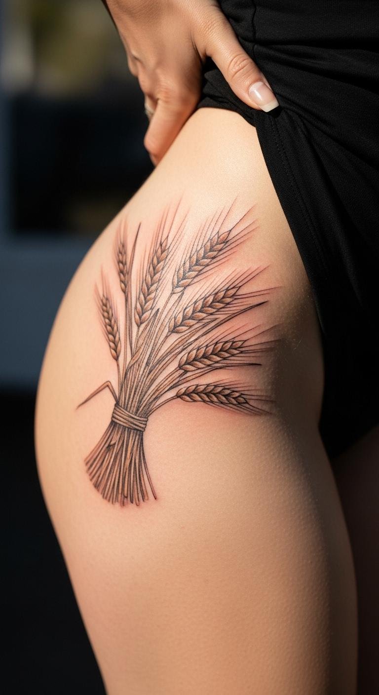 Wheat sheaves on your hip stand for abundance. Sketch sheaves. Online helps. $65. Natural fit. Personalize. It’s grounding. Marker trials. Simple aftercare. Harvest vibes.