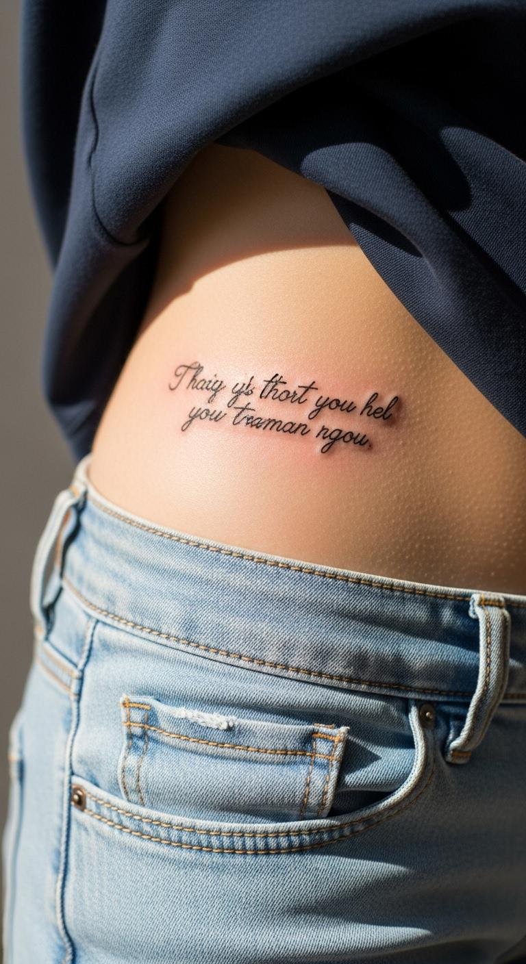 A tiny script quote on your hip puts your words front and center for daily inspiration. Choose something meaningful, like a short phrase for motivation. Jot ideas in a notebook to refine them easily. Save cash by writing your own font ideas to share with the artist. A small quote might cost $40–$90. Situate it along the hip for discreet reveal. Personalize with your handwriting style. This design makes you feel empowered through its message. Try marker tests at home first. Use basic lotions for aftercare to keep it simple. It’s an affordable way to carry your story.