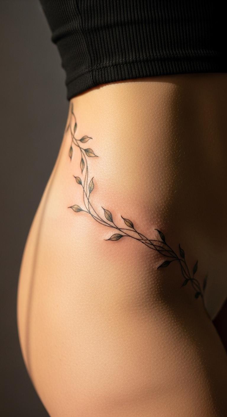 A vine wrapping your hip symbolizes growth and connection subtly. It’s easy to hide yet meaningful. Trace vine ideas on your body with a pen. Find free vine templates online. Expect $55 for a small one. Tuck it into the hip fold. Add leaves for personalization. This tattoo feels empowering and versatile. Use washable markers for trials. Care for it with basic supplies. It’s a smart, low-key option.