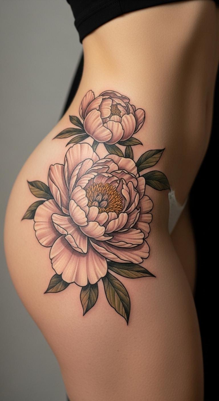 Peonies on your hip mean prosperity and beauty in full bloom. Draw them from garden pics. Free apps assist in design. Prices from $75. Place for flow. Personalize with colors. This tattoo celebrates you. Test with sketches. Basic care works. It’s inspiring.