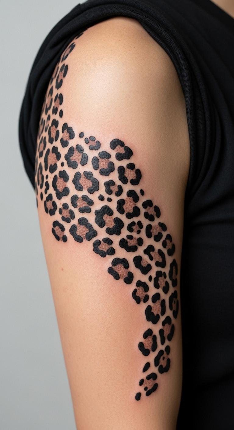 Leopard print tattoos mimic animal spots in clusters. They bring a wild vibe to your skin. Pick a design with spaced-out dots. Look for free pattern downloads to adapt. Draw spots on paper as a DIY start. This keeps expenses low from the beginning. Place them on arms for bold effect. Print styles play with negative space cleverly. Use grid paper to plan your layout. Go for grey shades to save on colors. They work well with casual outfits. Find artists who specialize in patterns. This gets you a clean finish. Test the look with temporary markers. Leopard prints add personality without much effort.