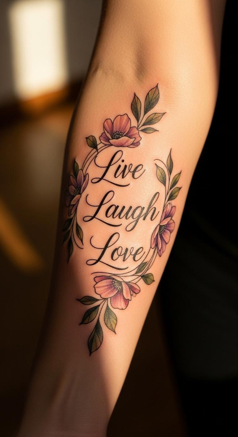 Add flowers to your arm for a fresh twist on “Live Laugh Love.”