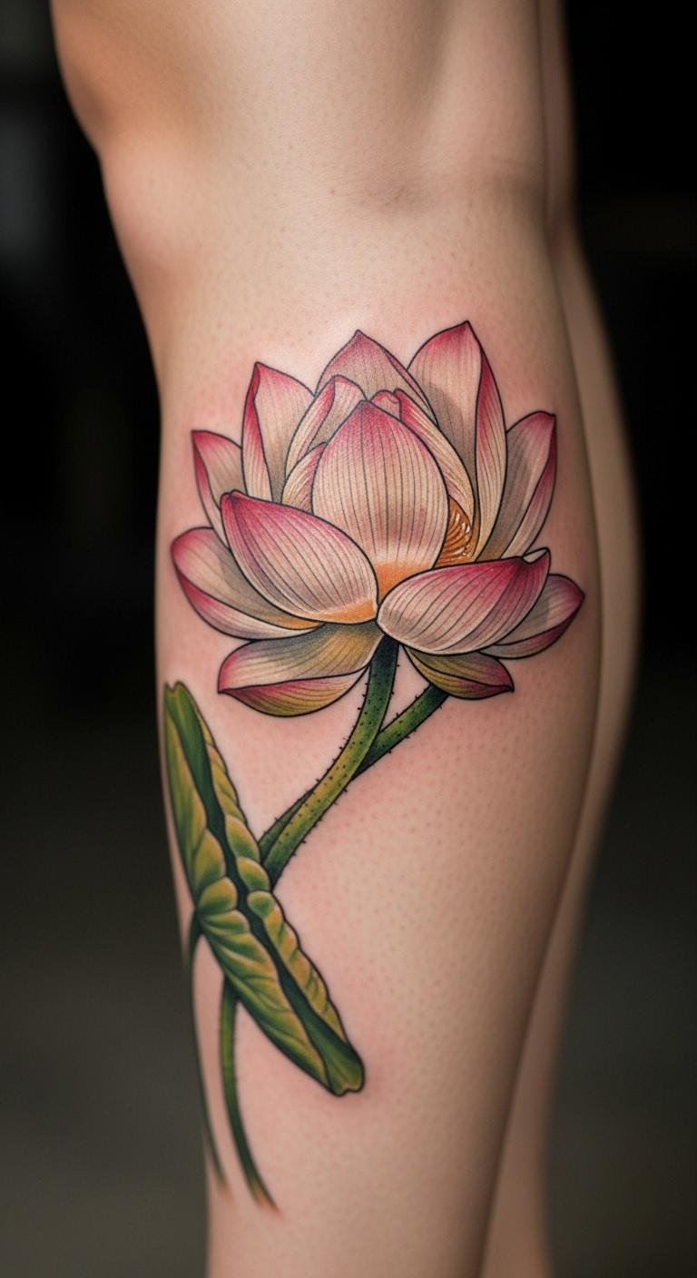 The calf offers a great spot for a visible lotus. It represents growth in motion. Trace it on your leg with washable ink. Budget tip: Leg wraps with designs cost $5. Artists place them for $45. Match it to your stride.