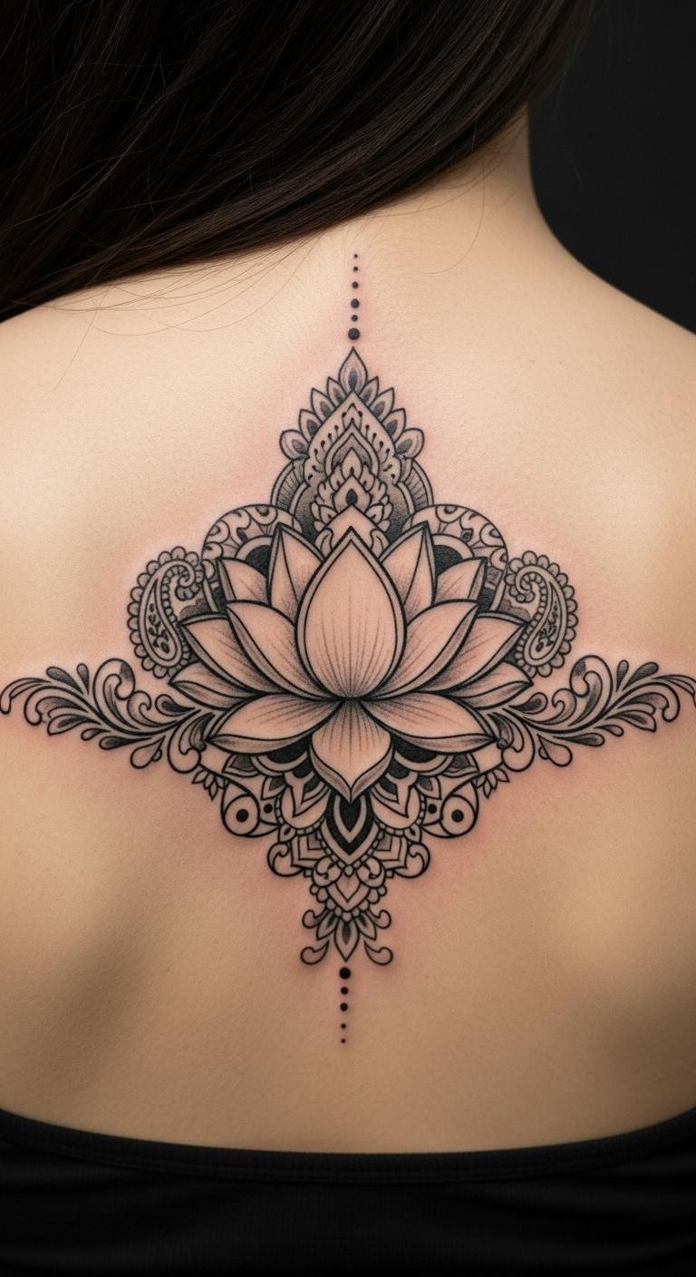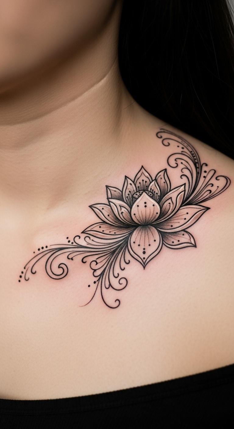 Ornamental details make the lotus feel extra feminine. Swirls and curves add grace and power. Draw swirls around a basic flower. Budget tip: Use string art kits for $4 to mimic patterns. Temporary ornamental tattoos are $6. Studios offer custom touches for $40. Wear it with confidence. This design enhances your style.