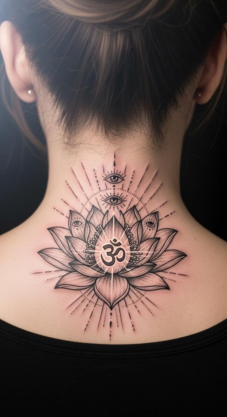 Awakening details make the lotus glow. Add light rays or dots. Budget tip: Glow stickers for $3. Temporaries are $6. Artists illuminate for $50. Feel the shift.