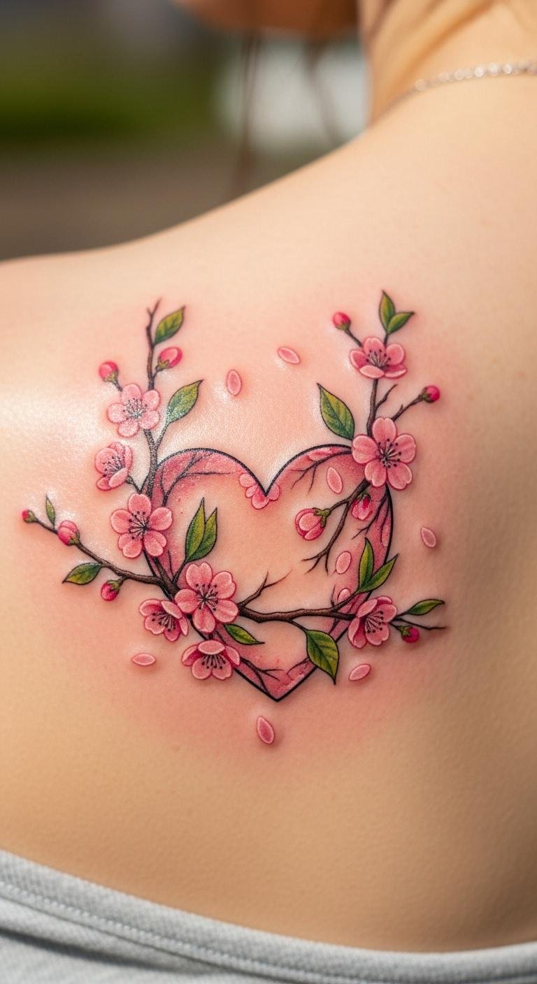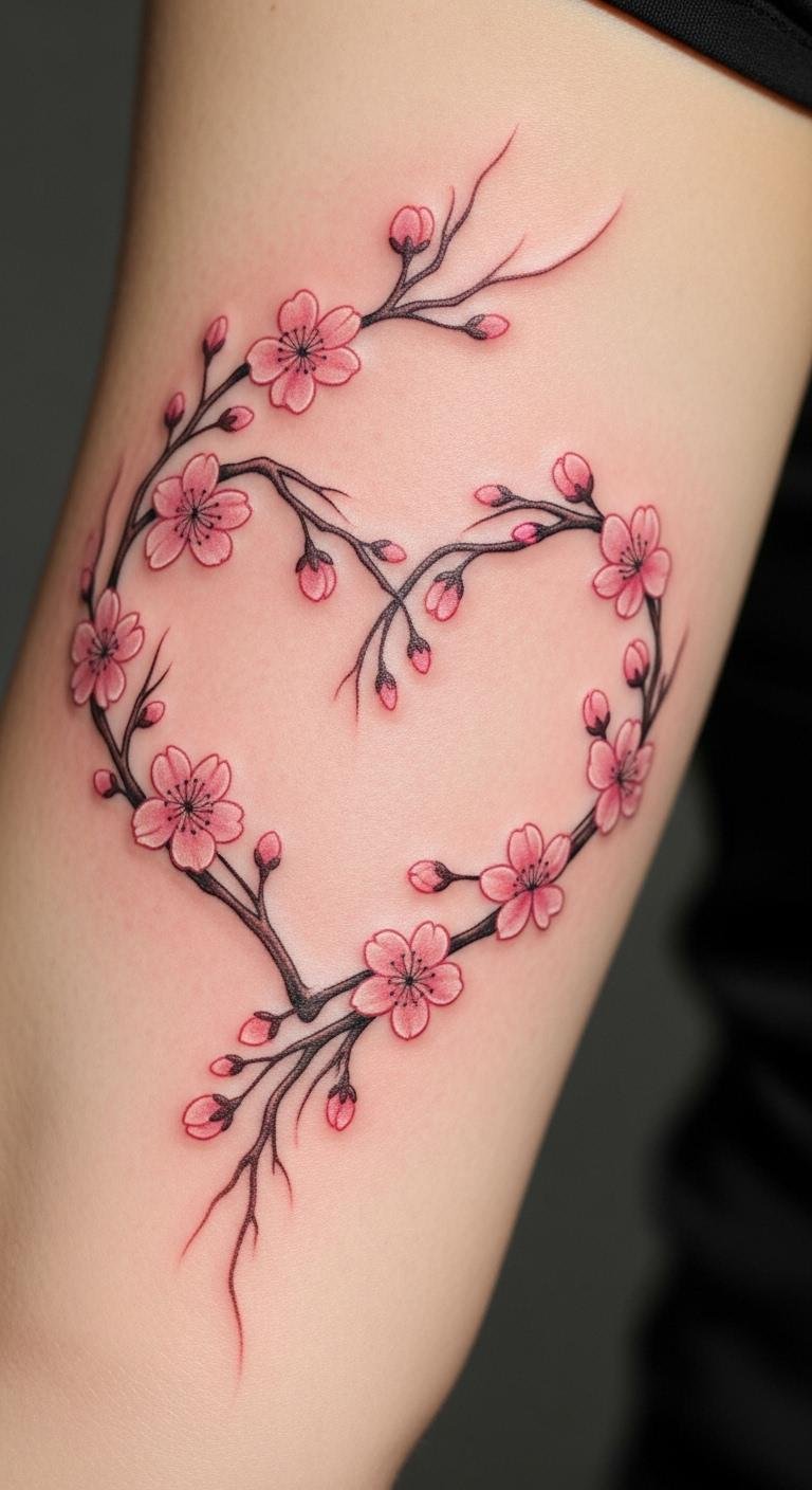 Seasonal Cherry Blossom Heart Tattoo