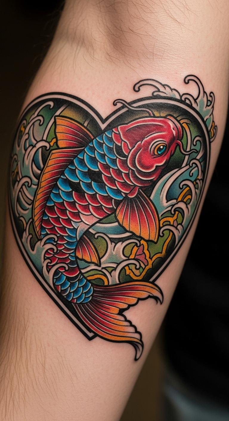 Neo-Traditional Heart with Koi Fish