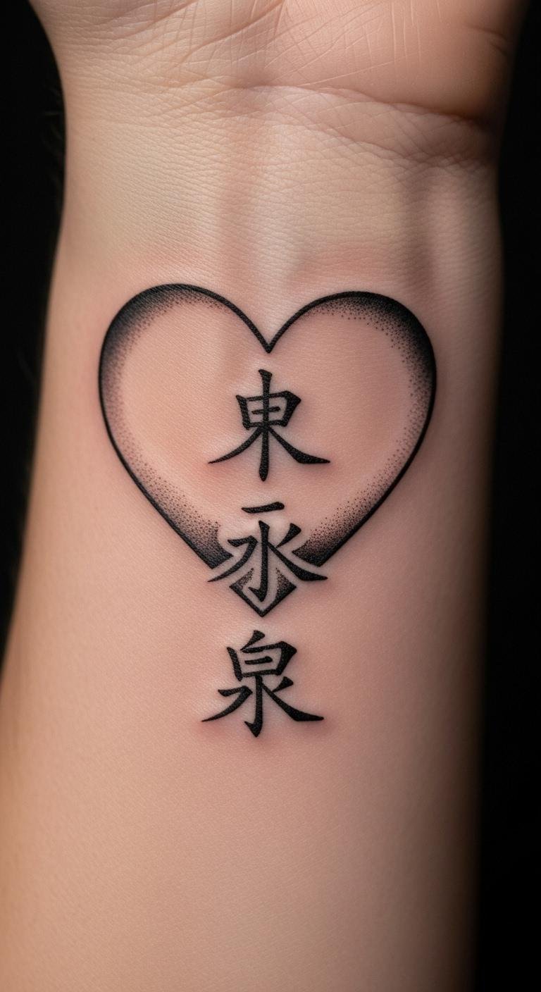 Kanji adds meaning to a basic heart. Choose words for love or strength in Japanese style. It turns your tattoo into a personal message. Research online for free translations. Sketch with a pen at home. Local artists often have affordable packages around $80. Practice with temporary stickers first. They cost almost nothing. Customize by picking your favorite phrase. Opt for your inner wrist to keep it discreet. Simple cream helps with healing. These tips let you personalize easily.