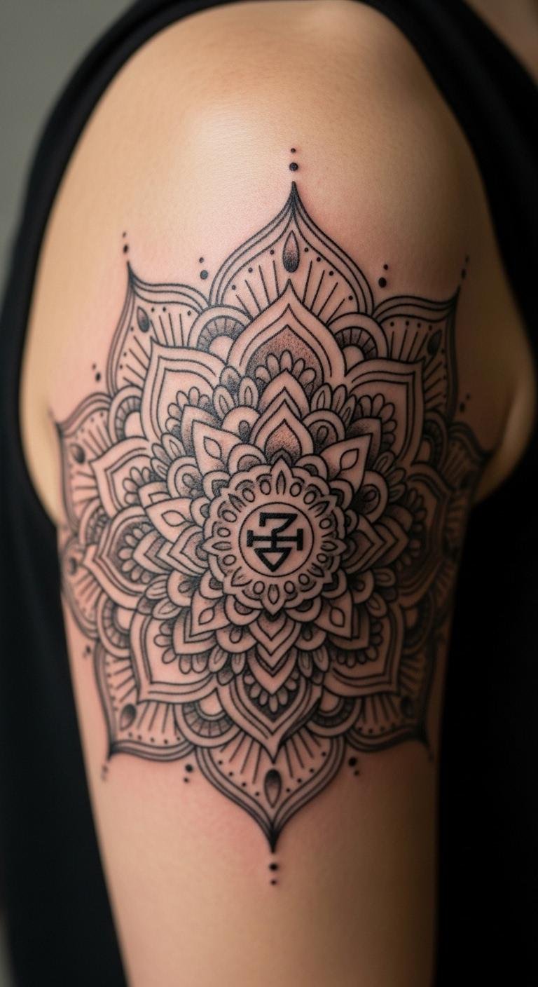 Geometric mandalas offer clean lines and balance. Think circles within squares for that timeless look. Start with a simple sketch on paper to test ideas. Use a ruler and compass from your home drawer for DIY planning. This style suits anyone wanting symmetry without fuss. Pick a spot like your forearm for easy viewing. Budget tip: Draw your design first with a free app like a basic drawing tool on your phone. Add personal touches, such as a central dot for focus. Keep ink costs down by choosing local artists over big studios. Real talk: Go for smaller sizes if you’re new; they heal faster and cost less. Experiment with tracing paper at home to tweak shapes. Bold the key: geometric patterns stand out for their simplicity. End result: A tattoo that feels grounded and easy to maintain.