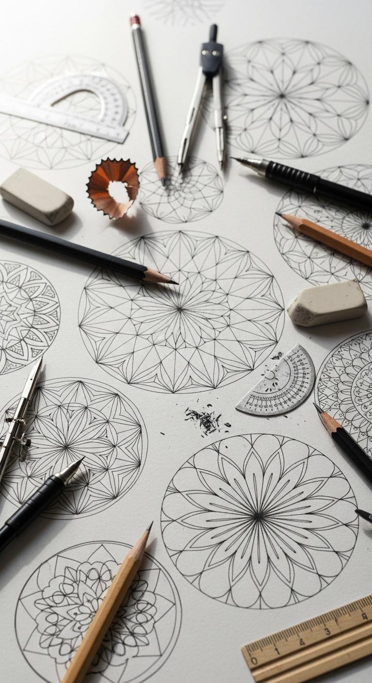 DIY sketching makes mandalas accessible. Use a pencil and paper you have. Draw circles and add patterns. This prepares for real ink. Budget hack: Repurpose old notebooks. Experiment with shapes daily. Real example: Start with a coin as a guide. Bold key: sketching basics spark ideas. Practice for free at home. It’s a creative start.