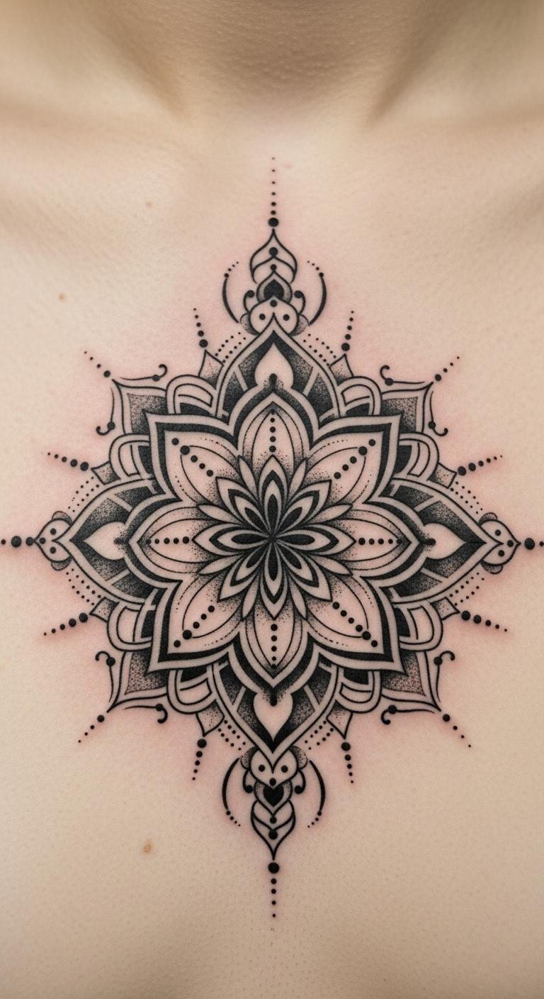 Sternum mandalas center your style. Trace on your chest with care. This spot feels powerful. Budget idea: Use cheap body markers. Include heart motifs. Healing requires gentle touch. Real DIY: Draw on a vest. Bold this: sternum spots center focus. Opt for outlines to afford. It’s strong and symbolic.