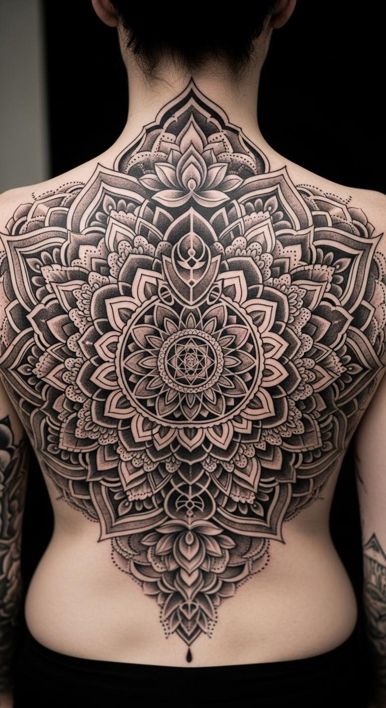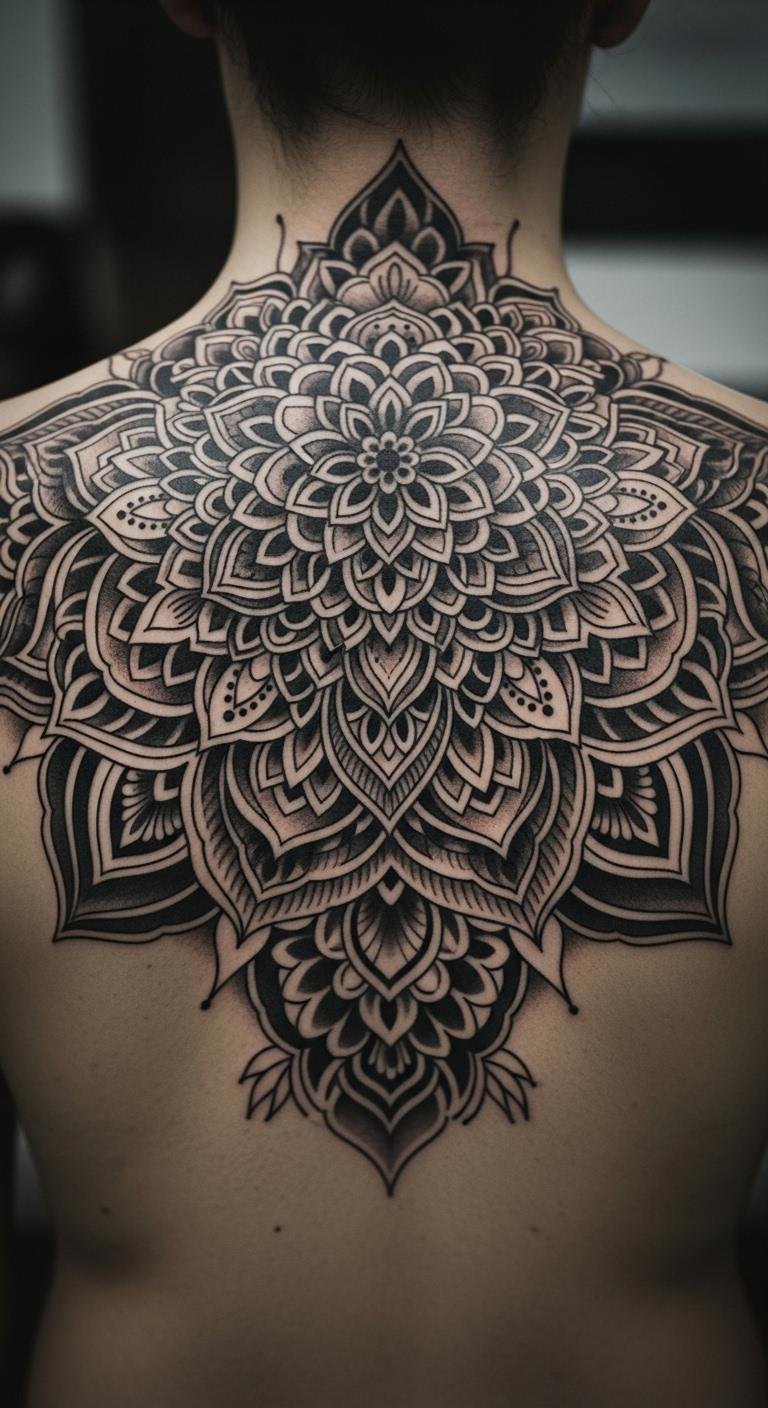 Black and grey mandalas offer classic shade. Sketch with a graphite pencil first for practice. Place it on your back for a big canvas. Budget tip: Use free online generators for outlines. Add shading with household items like charcoal. Healing is straightforward with basic bandages. Real example: Draw on yourself with a washable pen. Bold this: grey shades add depth easily. Choose smaller versions to keep expenses low. This design ages well and feels timeless.