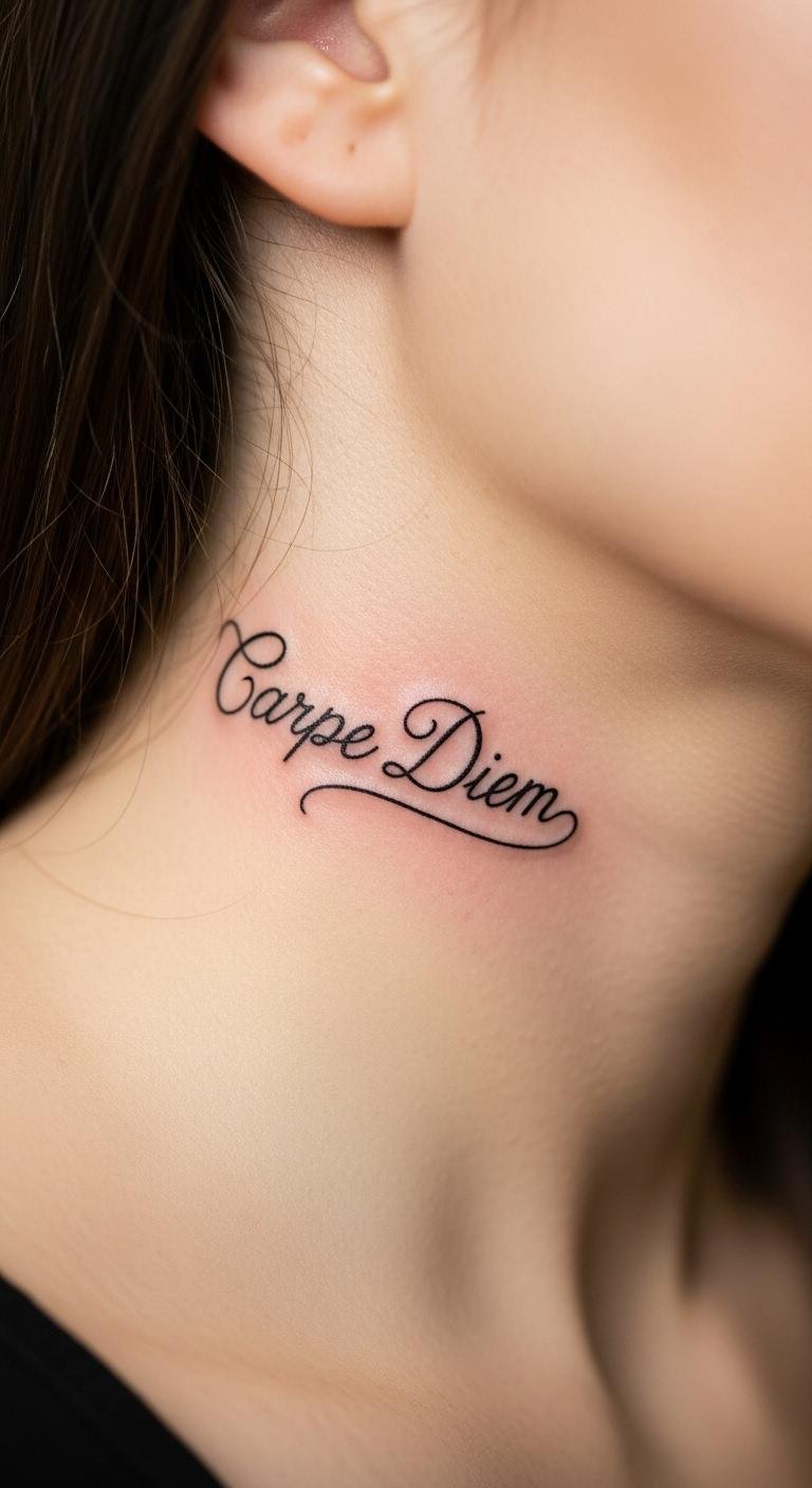 Script tattoos turn words into wearable art. A short quote or name in clean font adds meaning. It’s like carrying a motto. Write your phrase on paper to plan it out. Test with a free app that overlays text on photos. Get a peel-off sticker for under $2. Place it on the side for balance. Look for artists with script samples—prices around $70. Clean the area with gentle soap twice a day. This design empowers your story without extra cost.