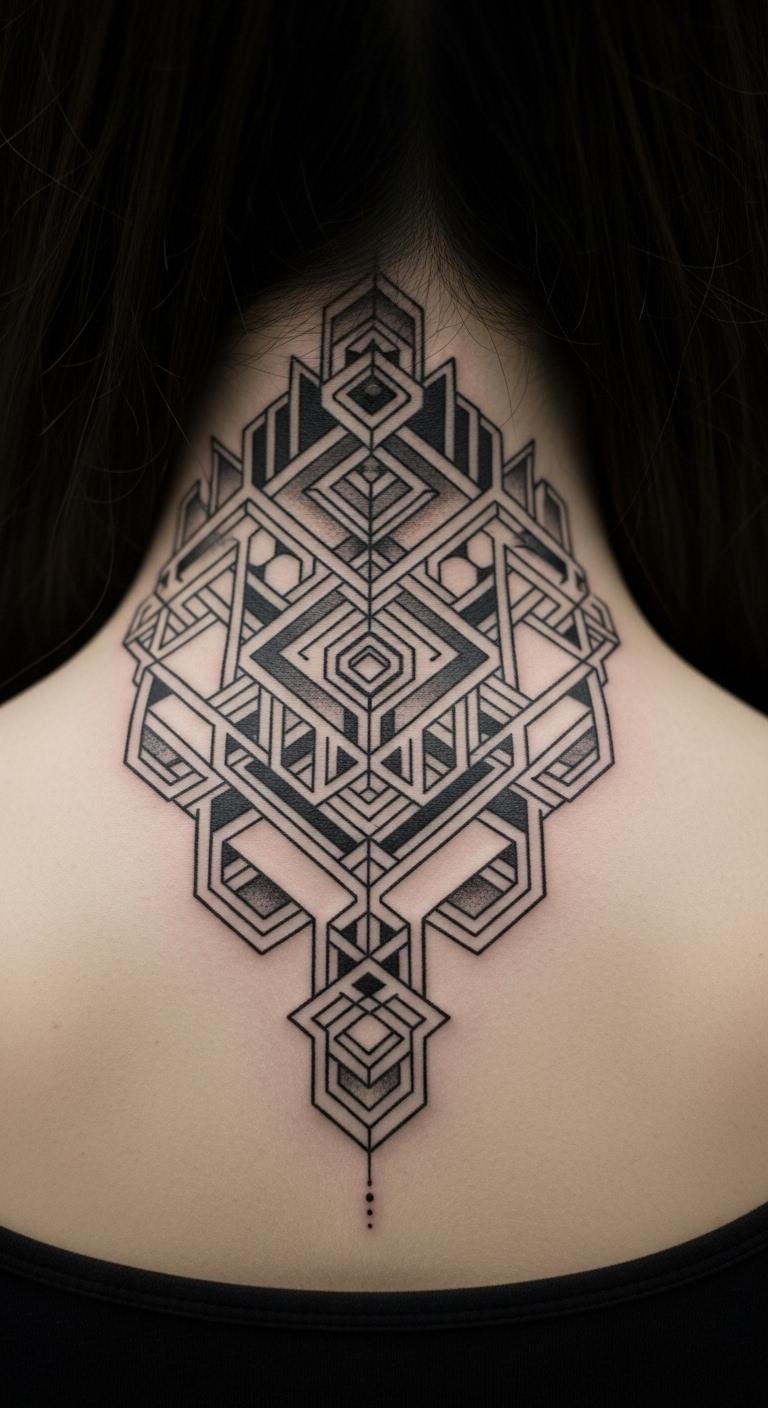 Geometric tattoos mix angles and edges for a modern edge. A small mandala or triangle fits the neck nicely. It represents balance in your life. Draw shapes on your skin with eyeliner first—no cost involved. Try geometric stencils from craft stores for $5. Apply them temporarily to check the look. Choose the front for a bold statement. Artists often do these for $80. Use coconut oil from your pantry to keep it moist. This style makes your neck a canvas of cool patterns.
