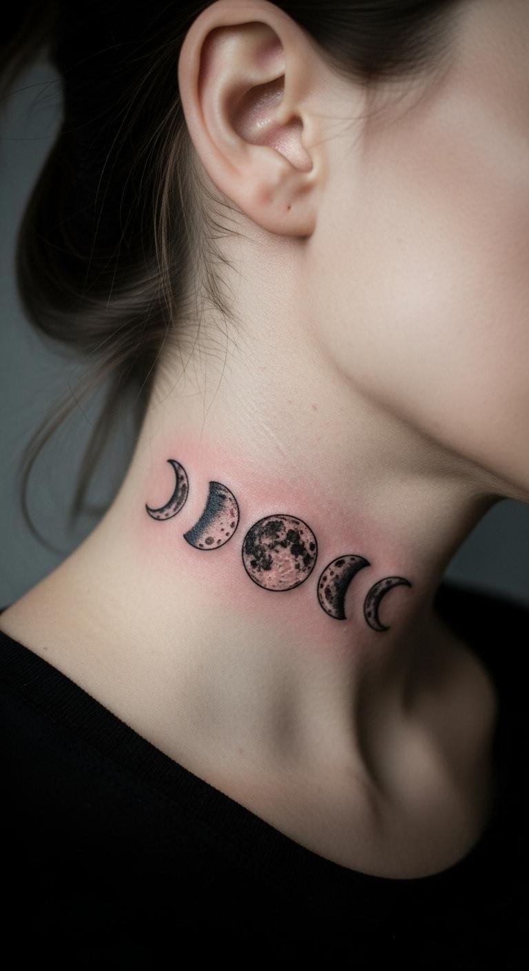 Moon tattoos capture phases of life. A crescent on your neck feels mystical. It stands for change or dreams. Sketch moon shapes in a notebook for ideas. Apply silver temporary tattoos for $3. Test placement before committing. Put it on the side for easy access. Artists charge around $60 for symbols. Dab vitamin E oil on it daily. This design adds a touch of wonder to your routine.