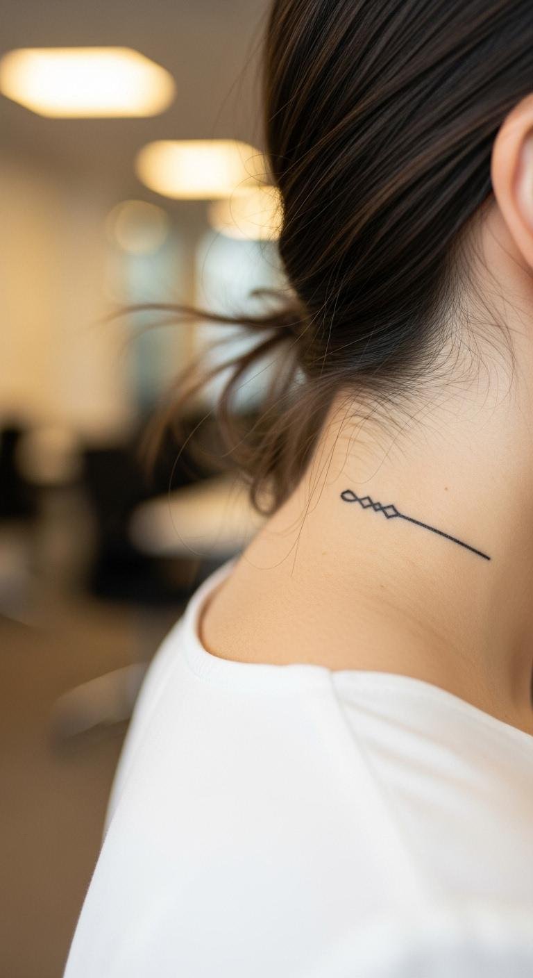 Discreet tattoos hide in plain sight. Place them under hair or near the collar. A tiny dot or line works well. It’s perfect for daily wear. Map it out with a mirror and marker at home. Use bandage tape for a mock-up—it’s cheap. Stick a fake one on for $1. Opt for the nape to stay covered. Find a studio with discreet options for about $50. Pat dry with a soft towel after showers. This approach keeps your style private yet powerful.