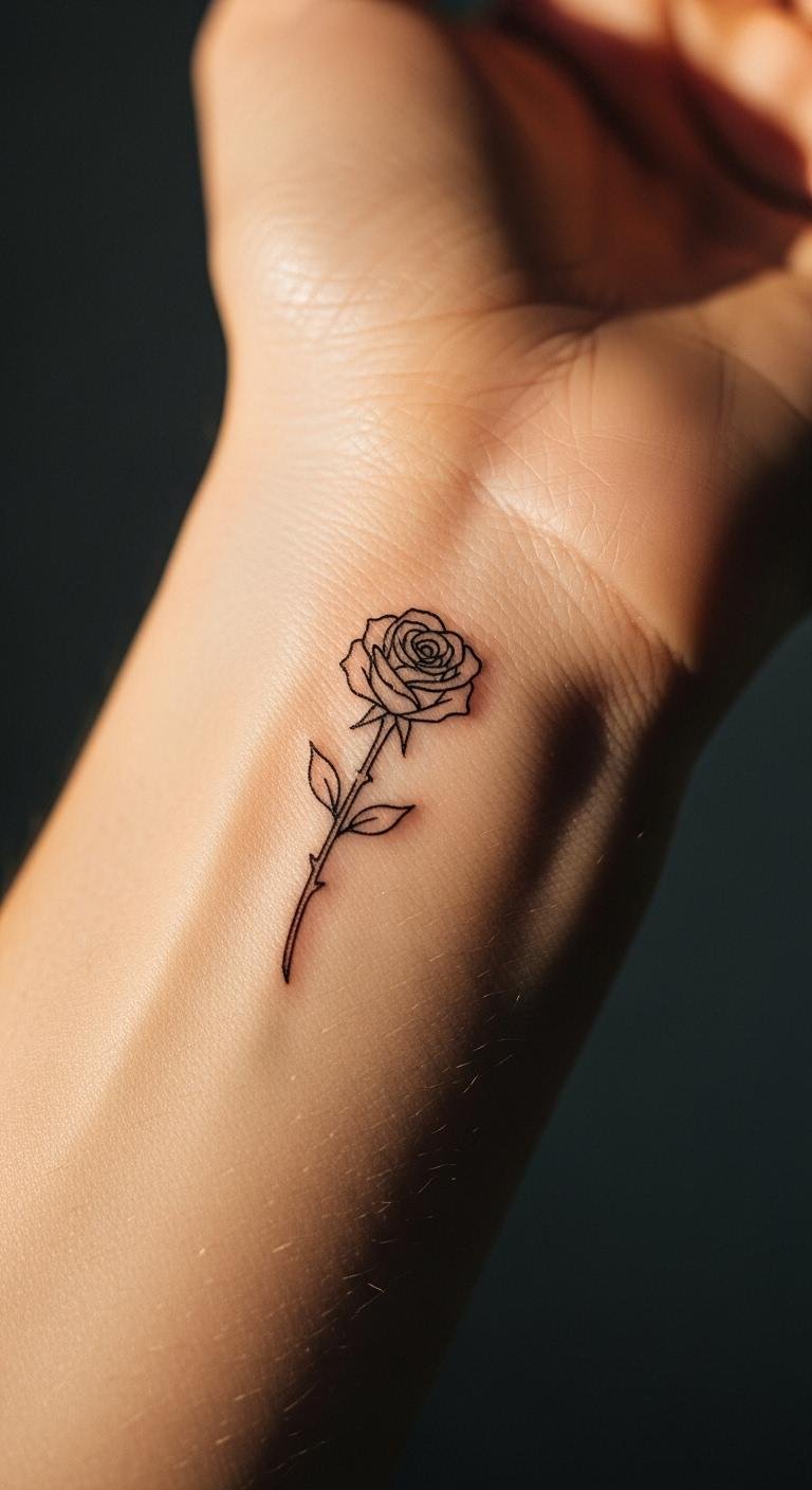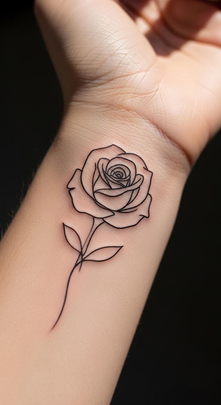 A single-line rose keeps things simple and elegant on your wrist. This design uses one fluid stroke to form the flower, making it ideal for daily wear. Picture a delicate outline that whispers rather than shouts. Start by drawing it on paper with a pen to test the look. Costs? Expect $50 to $150 from a local shop. Choose a basic black ink for affordability. Add a personal twist, like a small leaf, using free online templates. After inking, cover it with sunscreen daily to maintain the lines. Easy tweaks let you make it your own. Grab inspiration from artist pages and book a quick session. This approach saves time and money while looking polished.