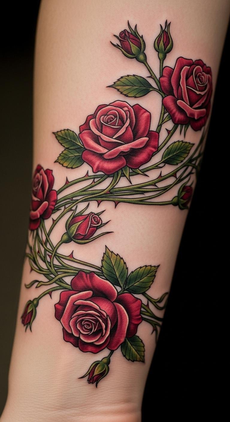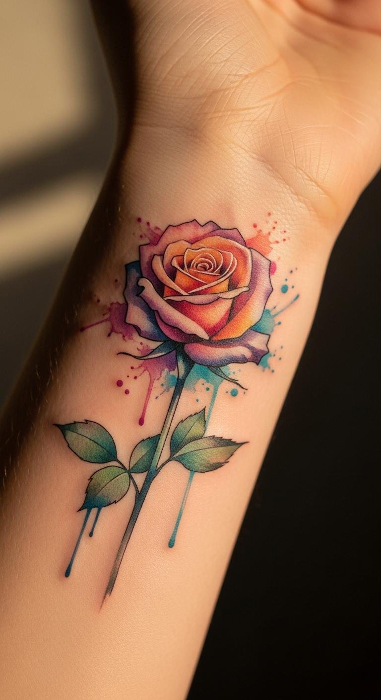 Watercolor roses bring an artistic flair with blended colors on your wrist. Think soft pinks and blues that mimic paint strokes for a dreamy effect. This style stands out without much pain, since it’s often smaller. Try sketching it at home with markers to preview. Budget tip: Aim for $100 to $200 at a nearby studio. Use affordable watercolor-inspired stencils online. Personalize by mixing in a favorite hue, like yellow for joy. Once done, apply a basic ointment twice a day to keep colors bright. Simple steps like this help it heal fast. It’s a fun way to express creativity on a dime.