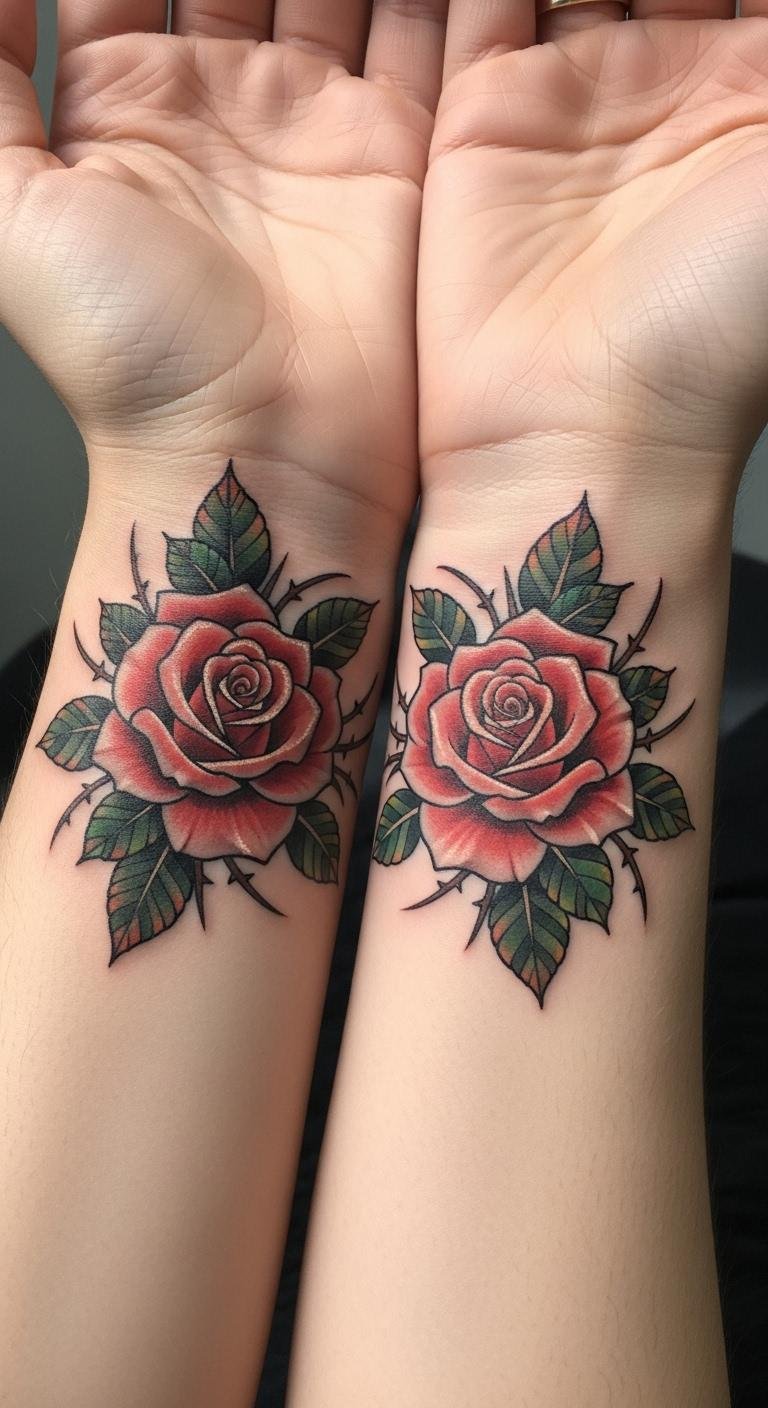 Matching roses let you and a partner share the same wrist ink. Mirror the flowers for a bond. Draw matching sketches together. Budget: $80 each. Find paired ideas online. Add a shared detail like a heart. Heal as a team with simple routines.