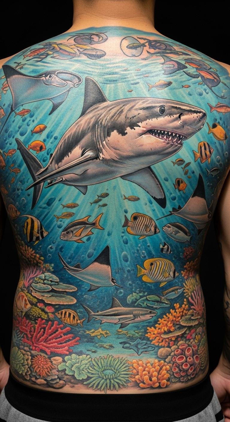 Shark Tattoos with Other Marine Life
