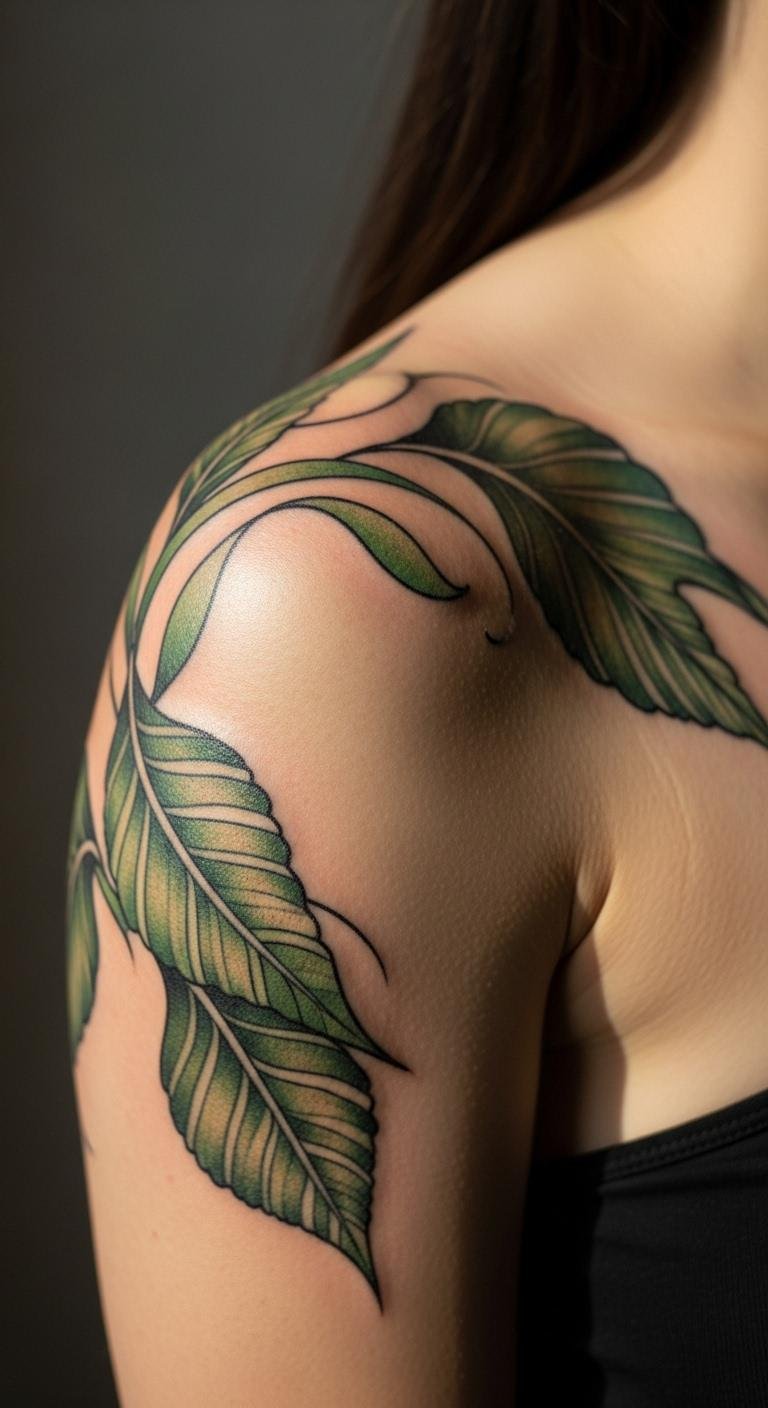 Leaves on your shoulder represent renewal and nature. Many women select them for a fresh feel. Choose a few for under $60. Try leaf rub-ons first. Find local promo rates. Nature design blends with your skin. Sketch leaves from your garden. Angle them along the curve. Moisturize regularly for healing. Wear it as a nature nod.