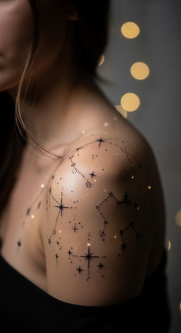 Stars on your shoulder mean guidance and dreams. Women pick them for inspiration. A cluster costs about $55. Test with star stickers. Look for night specials at shops. Celestial design adds sparkle. Map stars from the sky first. Place high on the shoulder. Heal with easy routines. Shine bright with this choice.