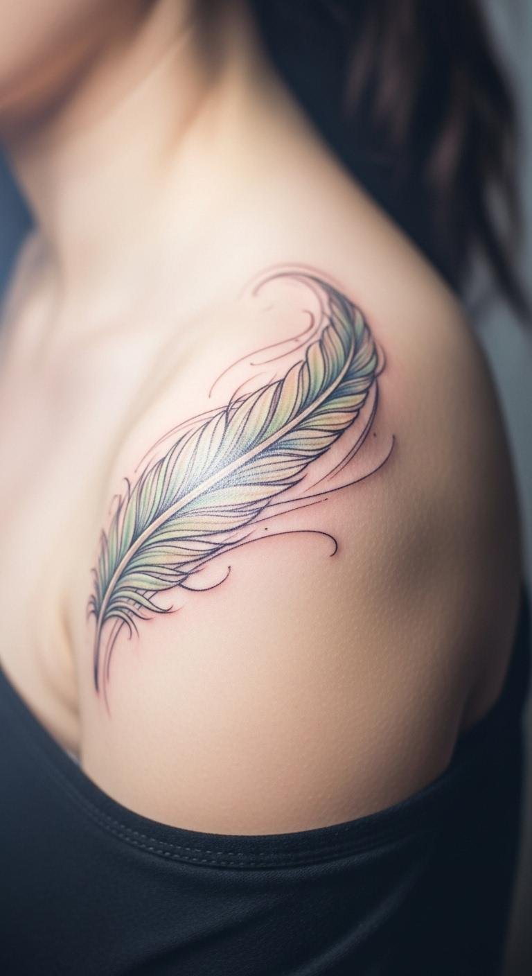 A single feather on your shoulder means freedom and lightness. Women love its gentle vibe. Keep it slim at $50. Test with feather decals. Seek freehand artist offers. Feather design floats elegantly. Draw feathers from birds. Place along the edge. Moisturize for best results. Fly high with this.