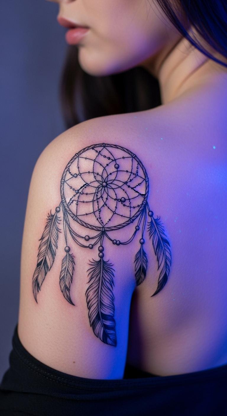 A dreamcatcher on your shoulder offers protection and dreams. Many women choose it for safety. Go detailed yet small for $80. Try dreamcatcher templates. Find protection-themed artists. Dreamcatcher design catches attention. Draw your own version. Weave it into the shoulder. Basic routines protect it. Dream on with this.