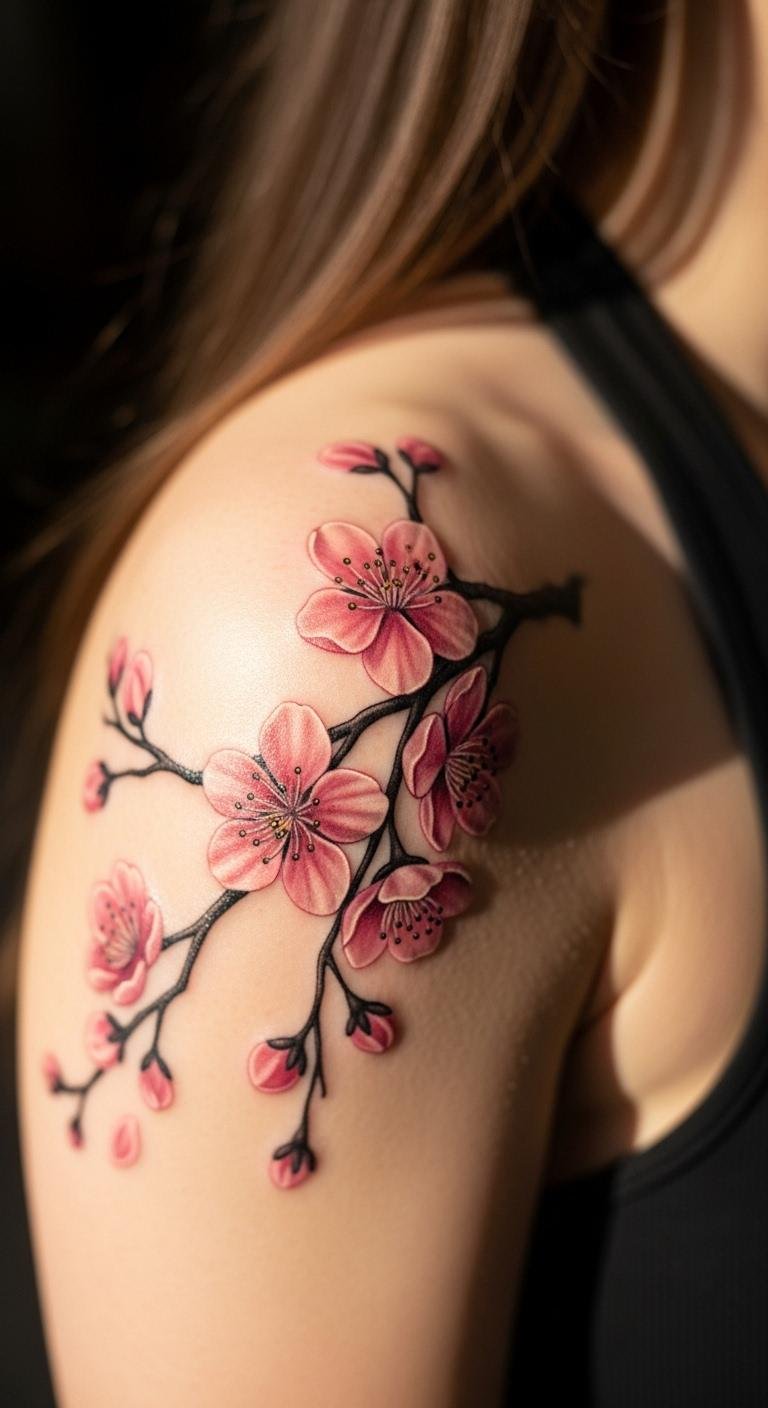 Cherry blossoms on your shoulder mean beauty and fleeting life. Women adore the delicacy. A branch at $70. Use blossom stickers for fun. Search for floral sales. Blossom design blooms subtly. Sketch trees in bloom. Place for seasonal flair. Heal with gentle touches. Blossom your style.