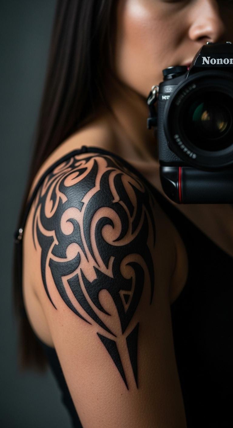 Picture thick tribal lines across your shoulder. They show cultural roots and power. Many choose this for its edge. Opt for a half design at $75. Use temporary tribal stickers to experiment. Find deals at tattoo events. Tribal tattoo adds a fierce touch. Sketch patterns on paper first. Flow it onto your upper arm. Simple routines handle healing. Reveal it when you feel ready.