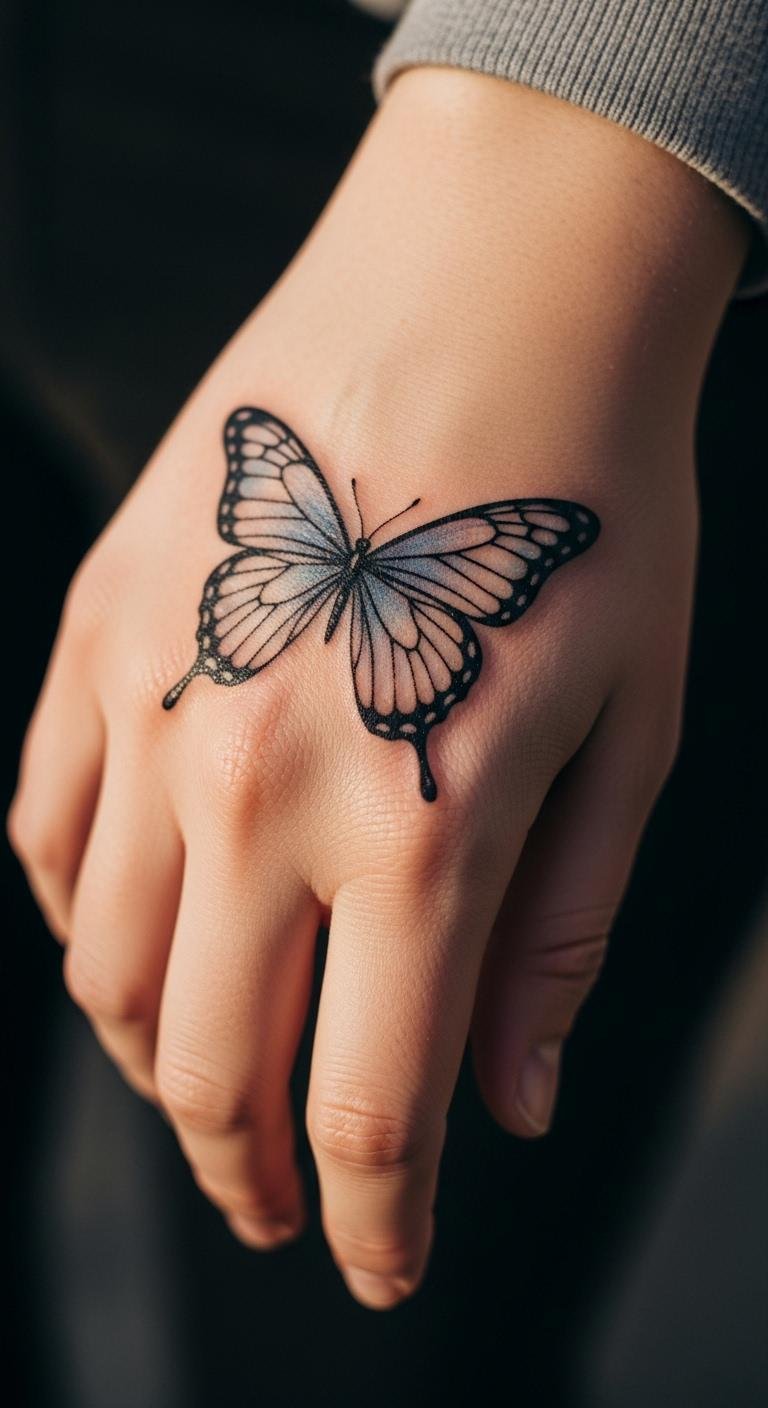 Butterflies symbolize growth and look great on hands. Sketch a basic wing shape on paper to start. It only takes a few minutes. Place it on your finger for a discreet option. This design feels empowering and light. Use colored pencils for a home trial—it’s budget-friendly. A small butterfly might cost $50 from an artist. Opt for outline styles to keep it simple. Add it to your hand for a personal story. Practice with stickers as a temporary test. They cost pennies. Keep the size small for first tries. This makes it easy to cover if wanted. Butterflies add a fun, uplifting element.