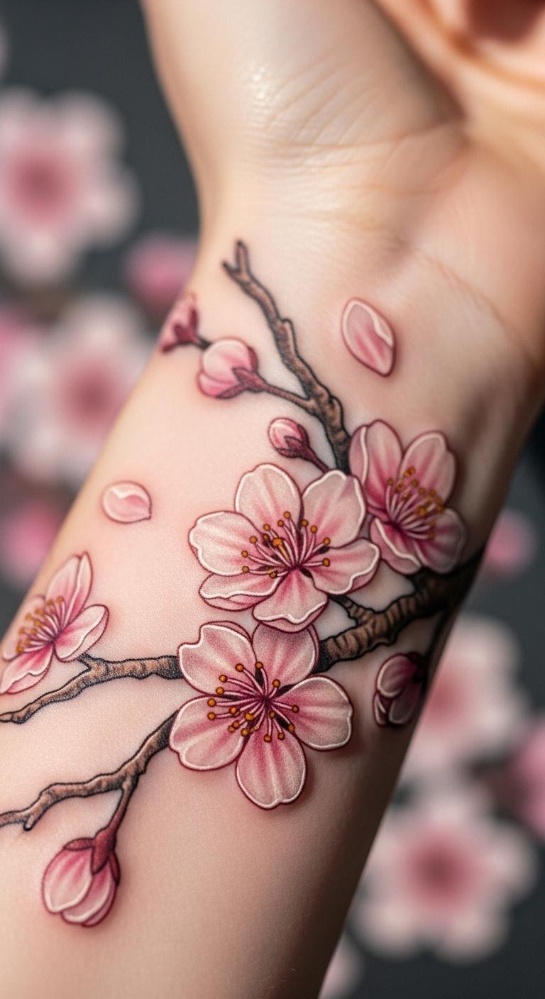 Cherry blossoms bring beauty to wrists. Sketch petals on paper first. Simple steps. Place them along your wrist for flow. This design evokes nature and change. Use leaves for templates at home. No charge. A blossom set is $55. Opt for fine lines. Try paper cutouts as tests. They help visualize.